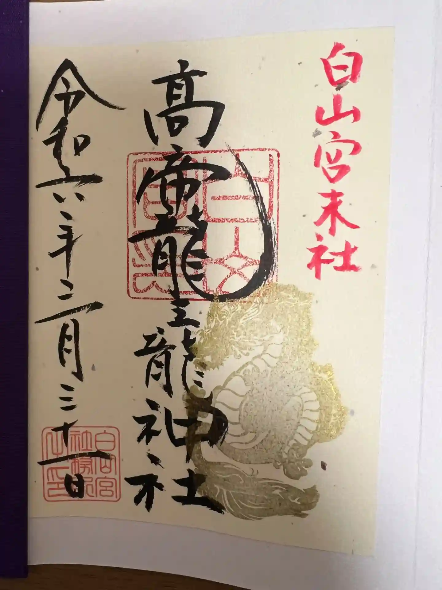 白山宮に参拝したときに、こちらの2体の御朱印を受けました。