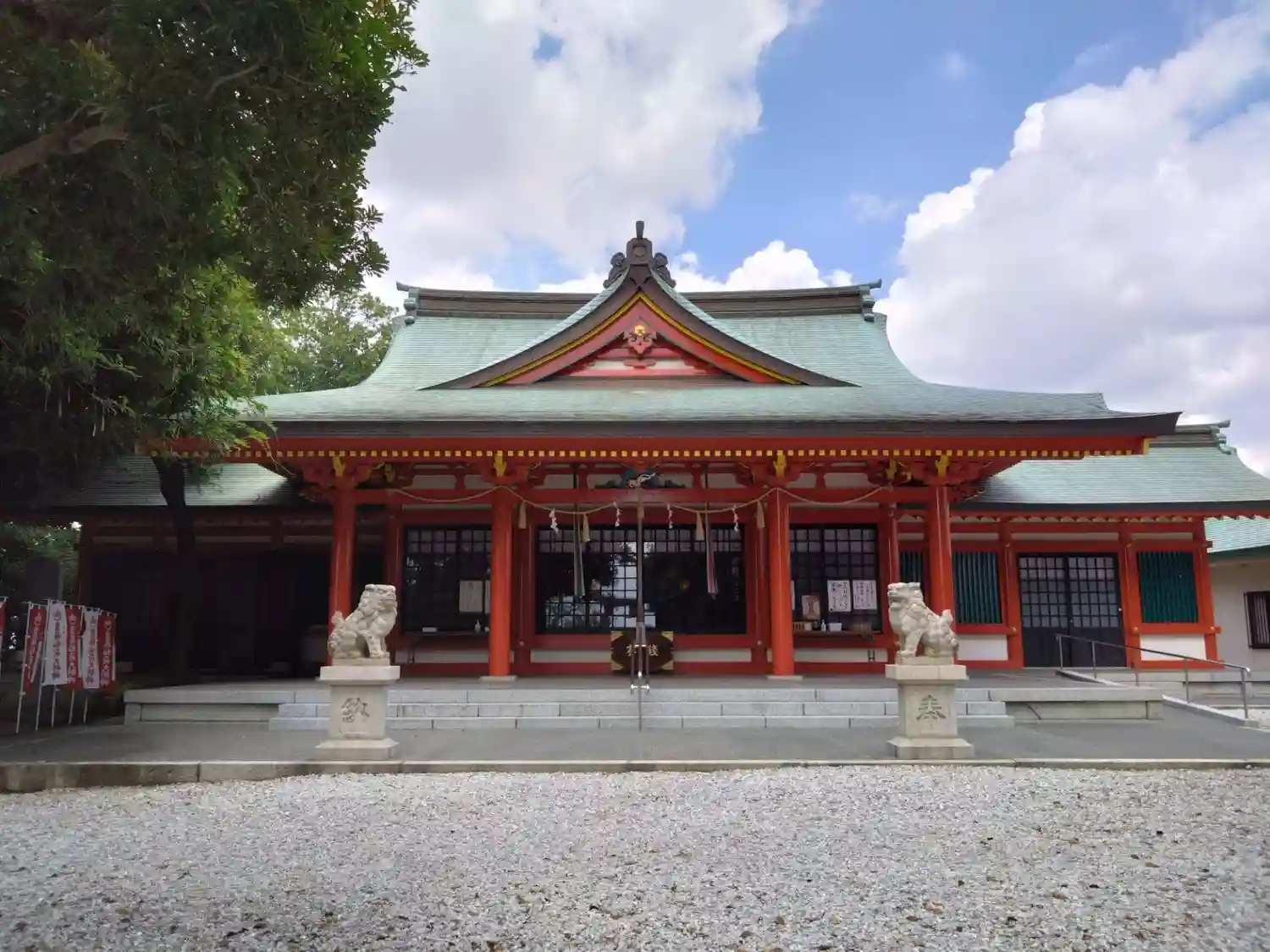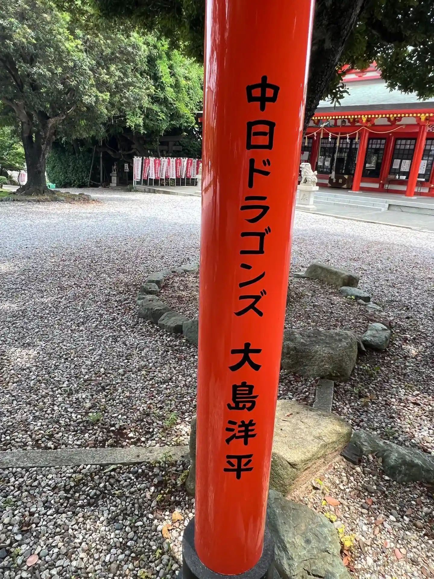 朱色が綺麗な社殿が印象的です。ちょっと気になったのは、中日ドラゴンズの大島洋平選手のサインは、どう…
