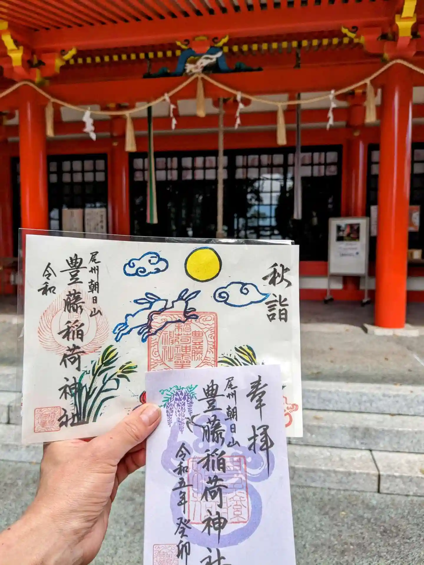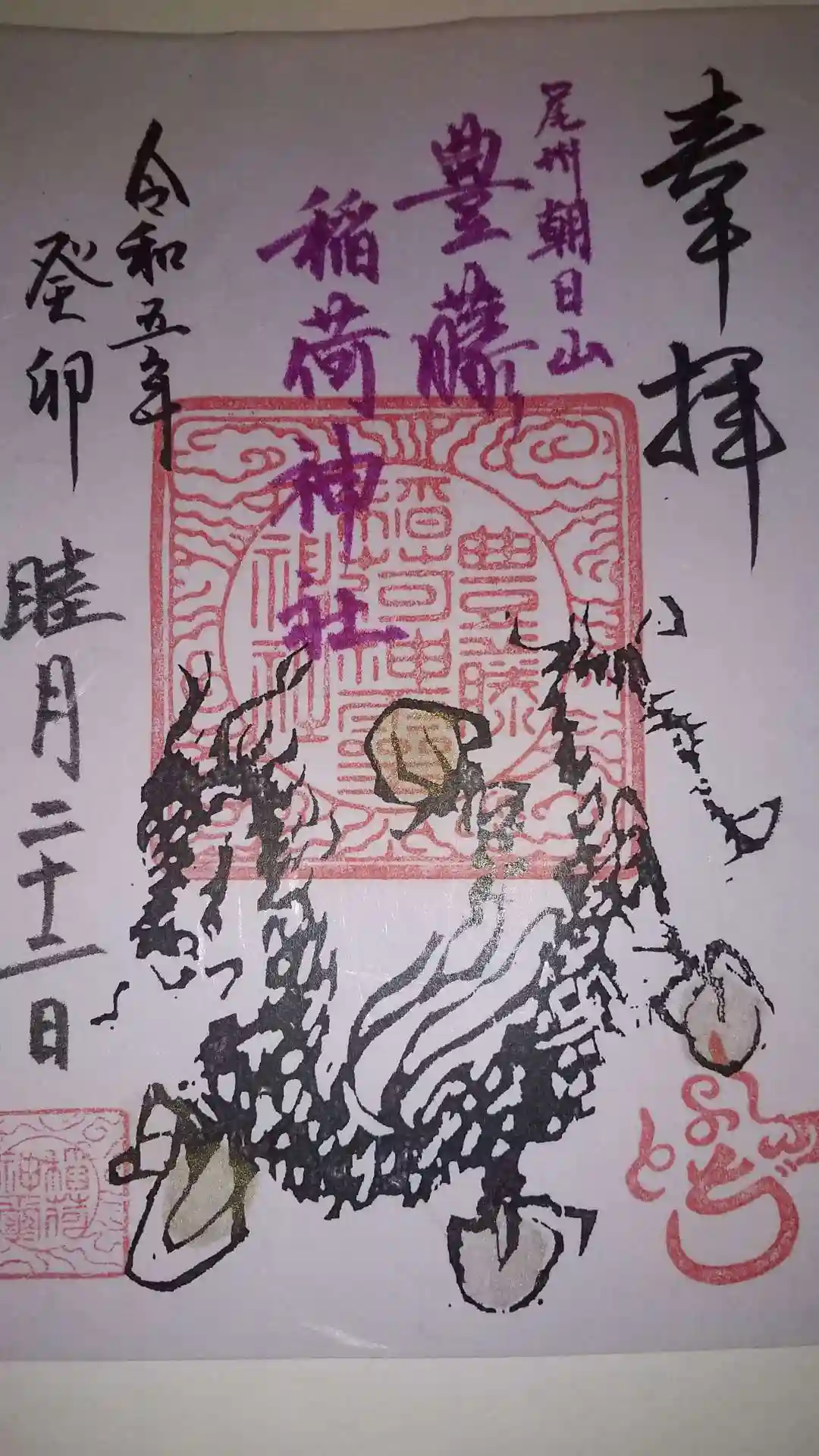 背景は薄紫色、豊藤稲荷神社の字体は「藤色」です。