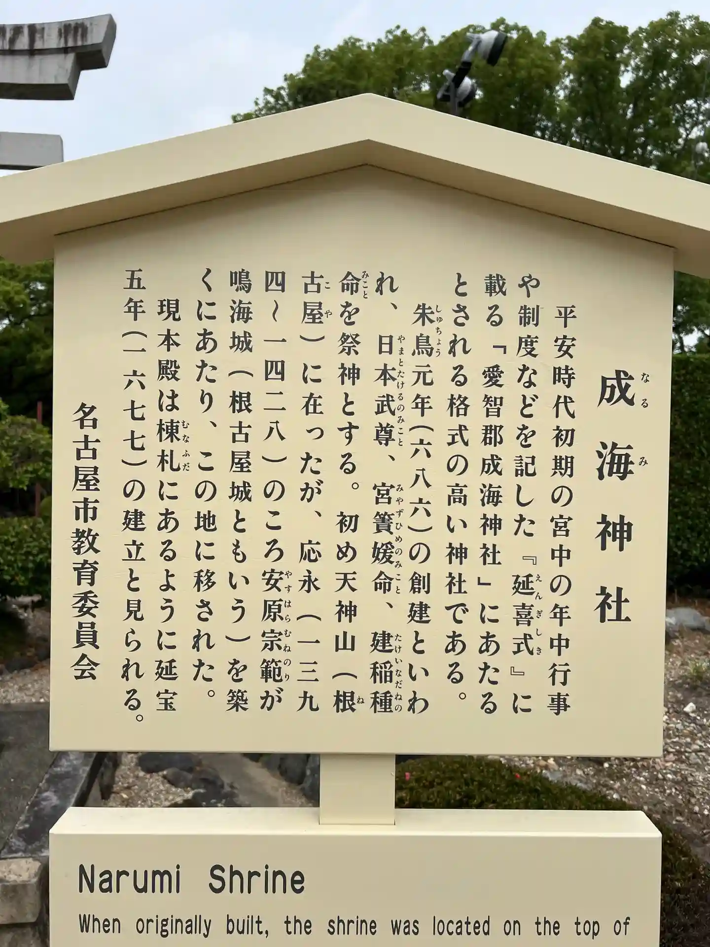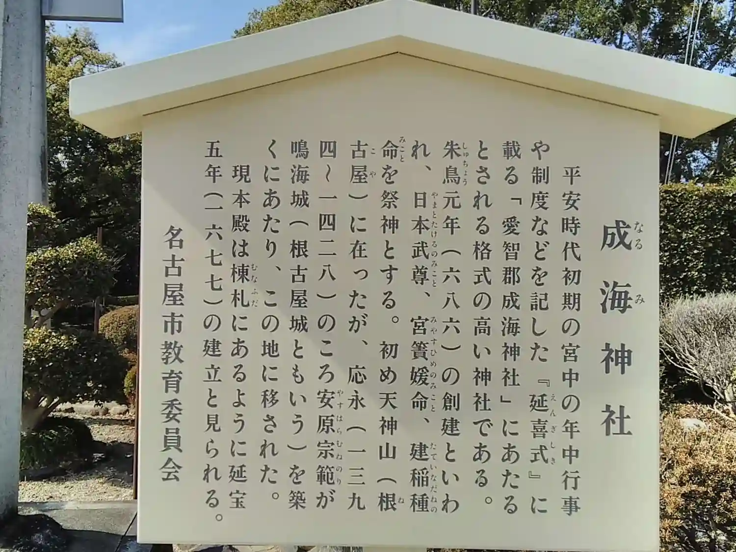 名古屋市教育委員会の成海神社さんに関する看板です。