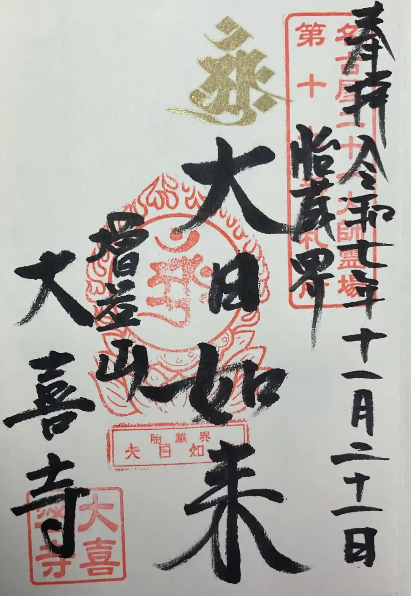 大日如来の梵字が金文字になっていました。