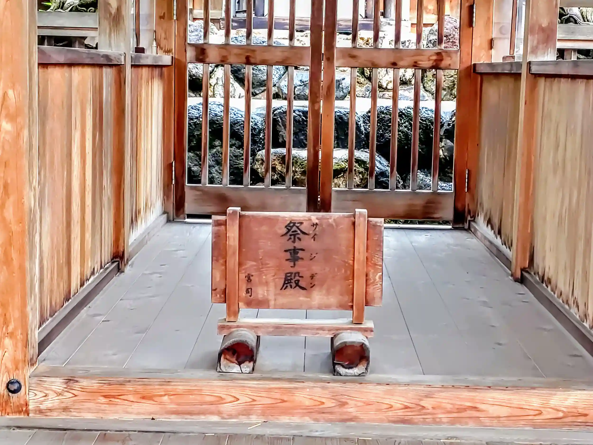 お参りをして、さて次の目的地と思ったら突然の雨。お清めの雨どころの騒ぎではない。お天気アプリで調べたら、あと5分ぐらいでやむらしい。天照さんに引き止められたのか。「ちょっと拝殿の軒下をお借りします。」