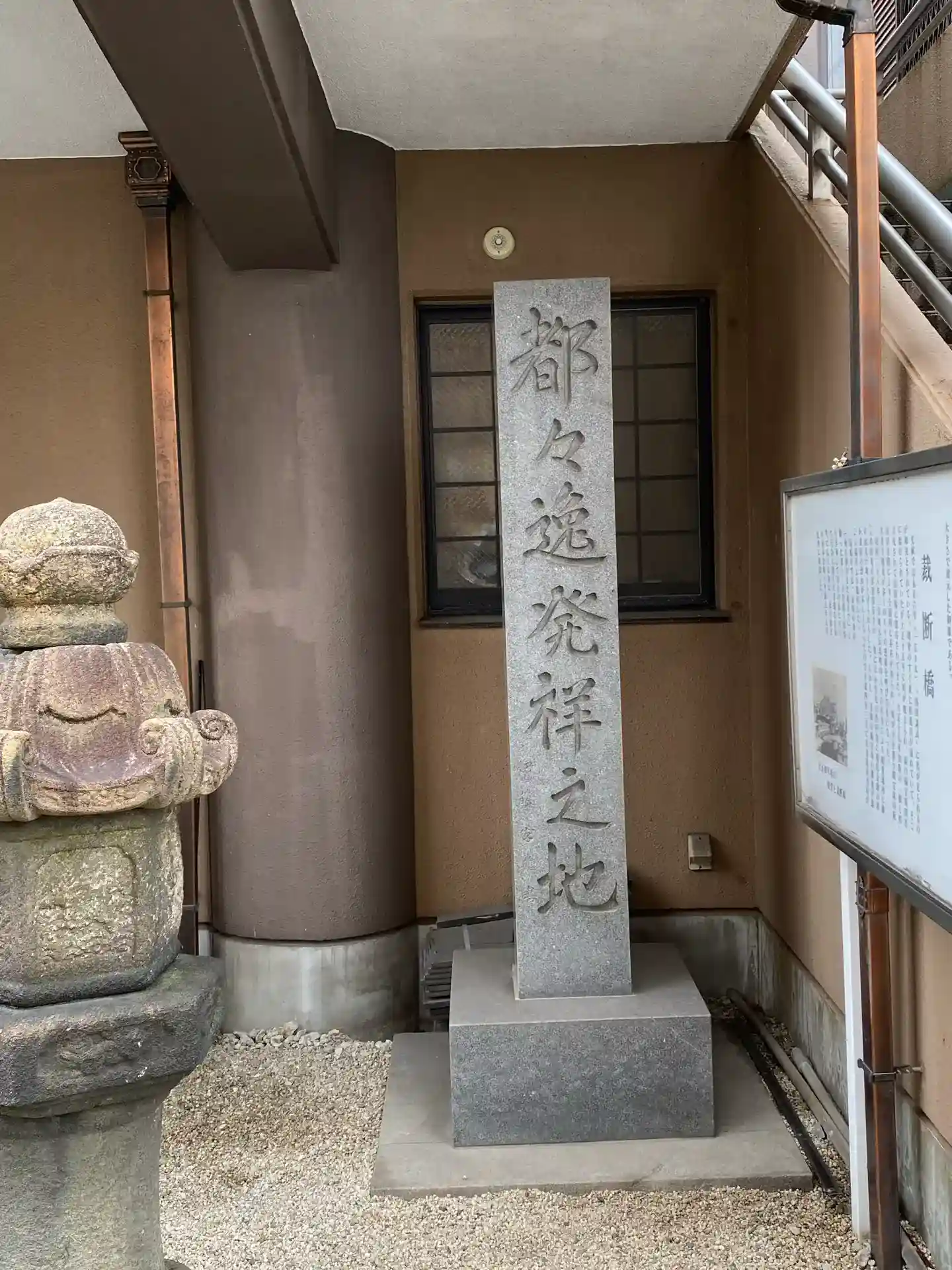 「鈴の宮(れいのみや)」とも呼ばれ、昔は精進川がこの宮のかたわらを流れていました。東海道を往来する旅人は、熱田の宮にお参りする前にここで身を清め、お祓いを受けてから本宮へ参拝する習わしでした。近くには都々逸発祥の地碑があります。寛政12年(1800)ごろ、今の熱田区伝馬町の東方付近で歌い出され大流行した。江戸時代、この辺りは東海道五十三次の1つ宮の宿と呼ばれ、旅篭が約250軒もあったという。その中の“鶏飯屋”で働くお手伝いさんが大変な美声で『神戸節』『潮来節』などを歌い、終わりに「どどいつどいどい」などという囃子を入れたのが始まりで飲食関係の女性から名古屋全域に広まっていった。やがて七・七・七・五の字数に合わせ、土地の情景や人情ものを歌い込む人が現れ、名古屋の名物となった。歌碑は縦1.8m、横30cmほどの御影石で、裁断橋跡の西側のたもとにあります。
