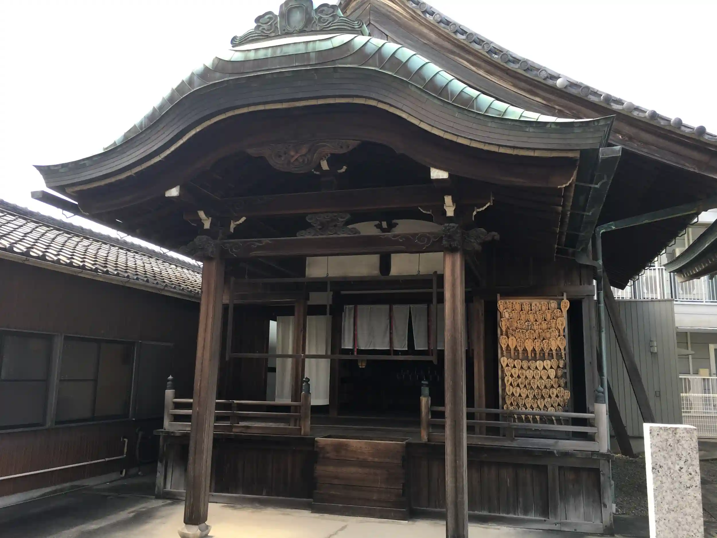 入り口には門は無くお寺の名前も無いので建物だけ見て最初は神社だと思っていましたが、授与所に貼られてる御朱印の見本を見るとお寺と神社両方ある…。