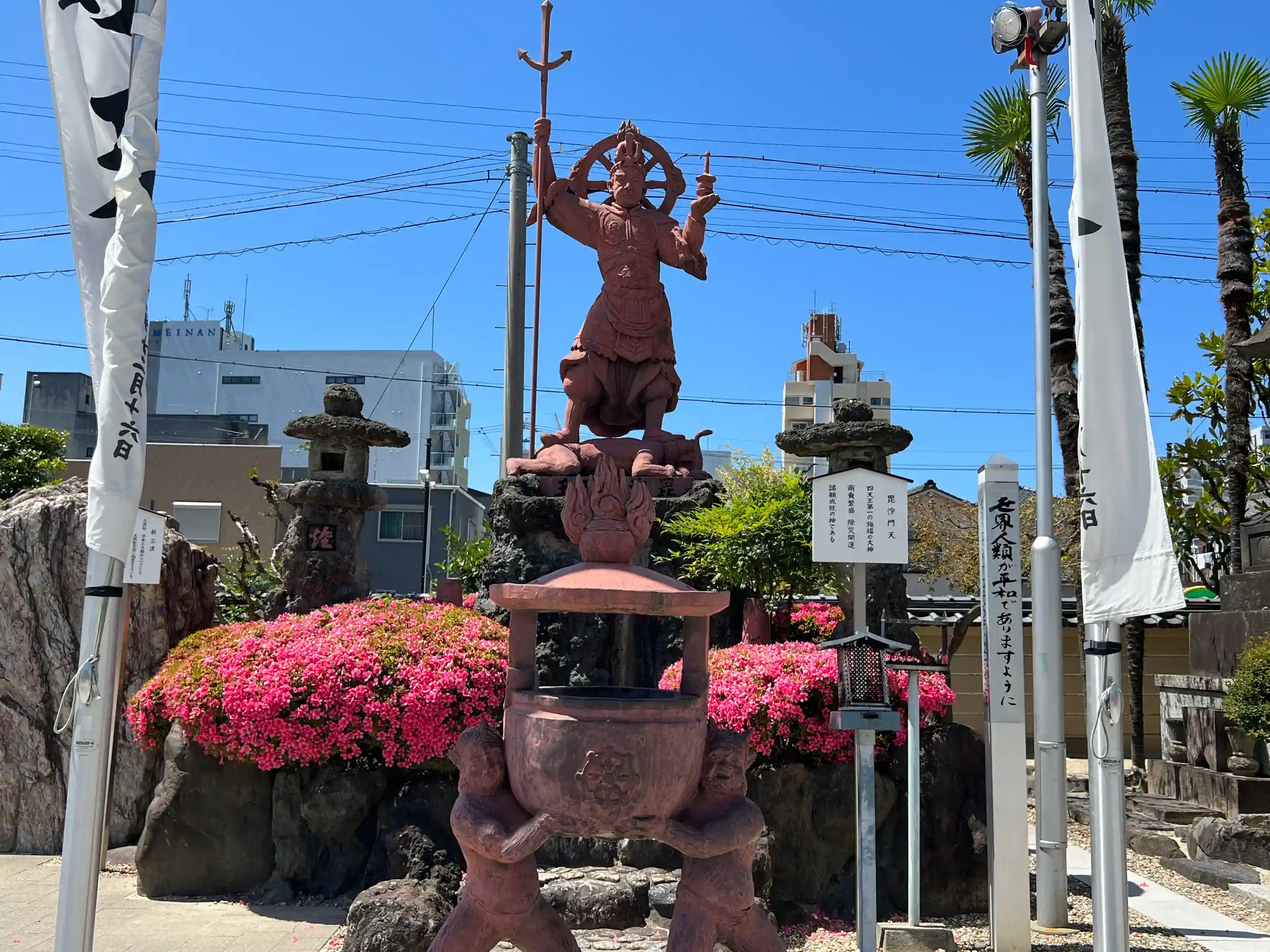 境内には毘沙門天の像が堂々と鎮座しています。
