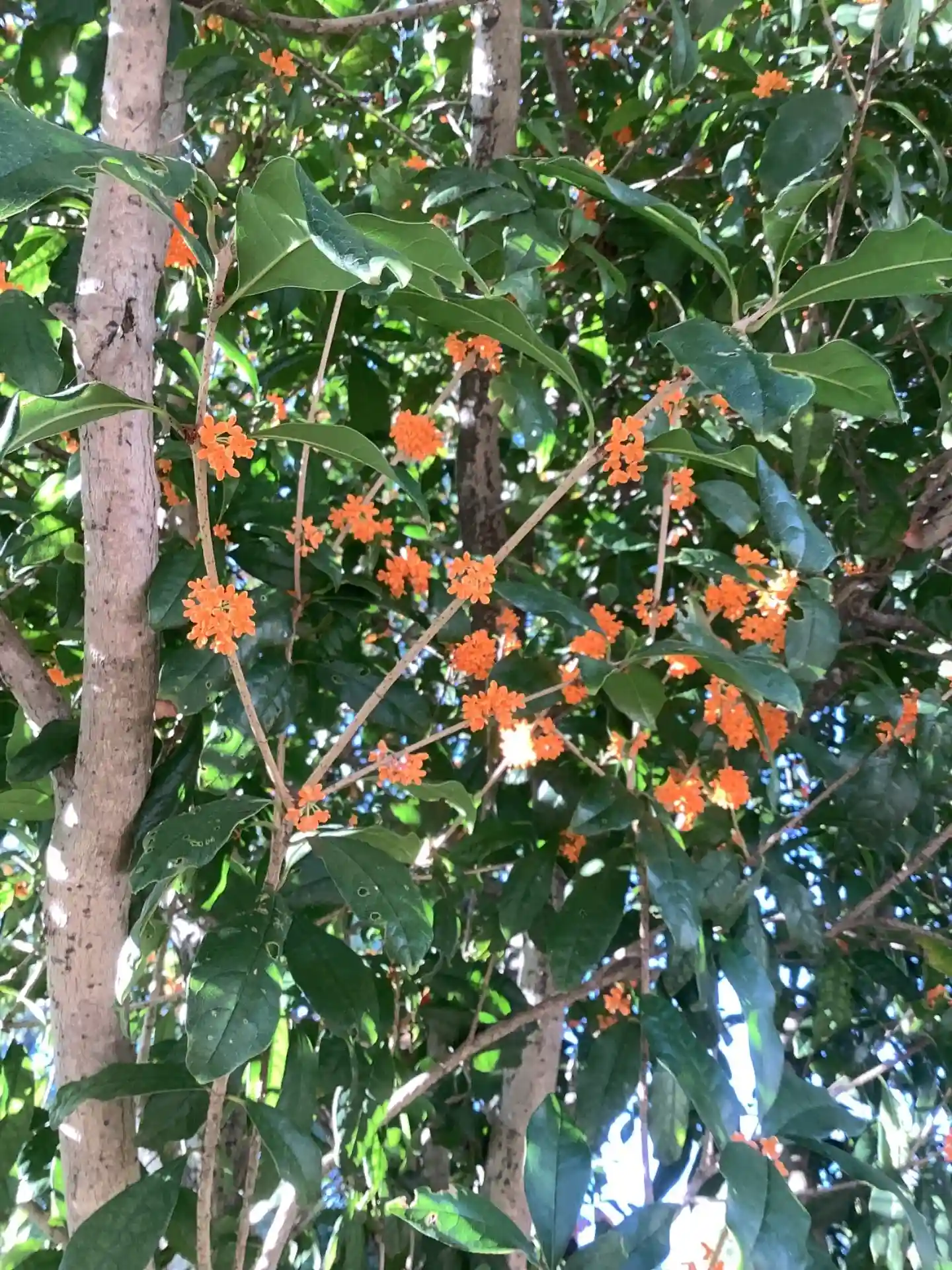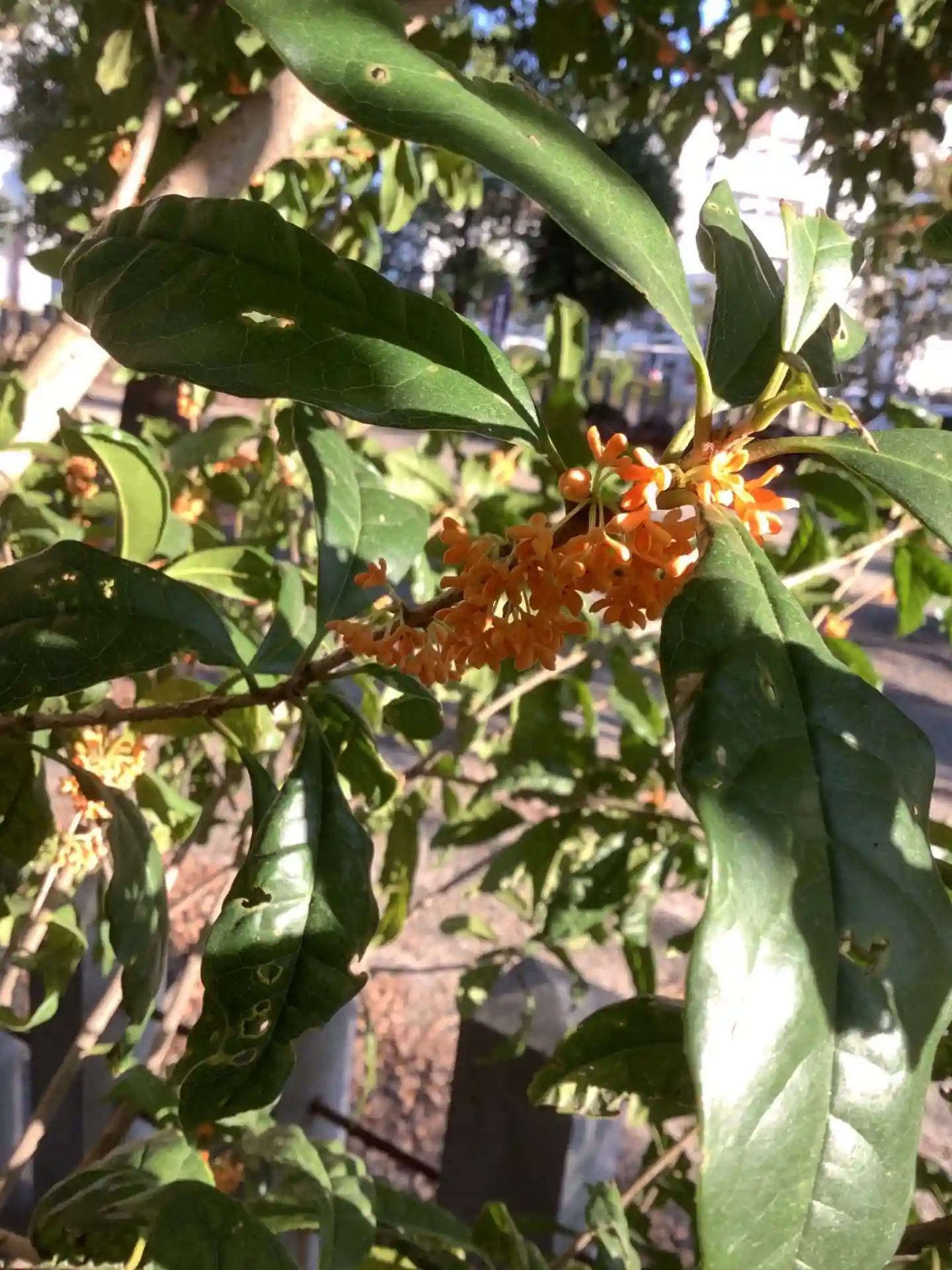 駐車場には金木犀があり、咲き乱れています。