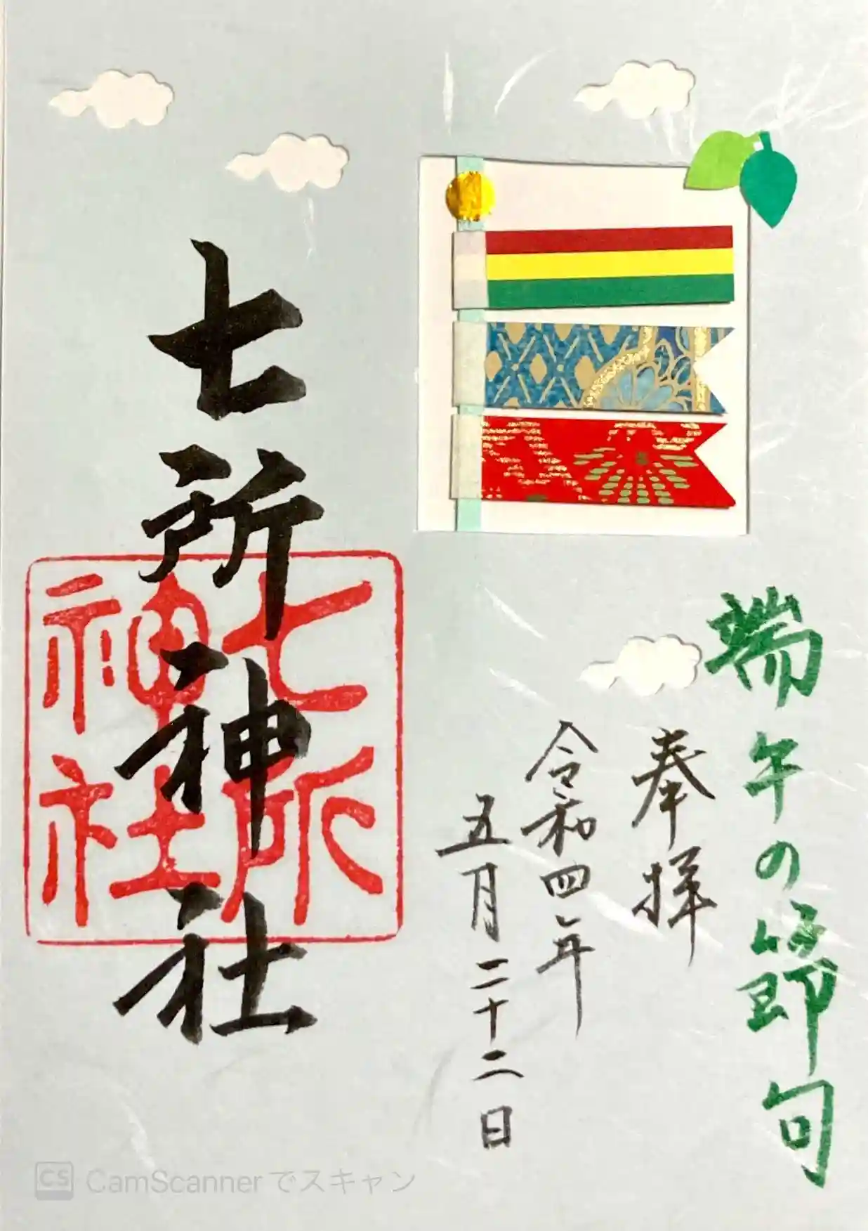 いい天気。パンクした原付が返ってきたので試運転がてらに、前から気になっていた七所神社に凄い安全運転で行ってきました。皐月限定御朱印のこいのぼりは柄を選ばせてもらいました。