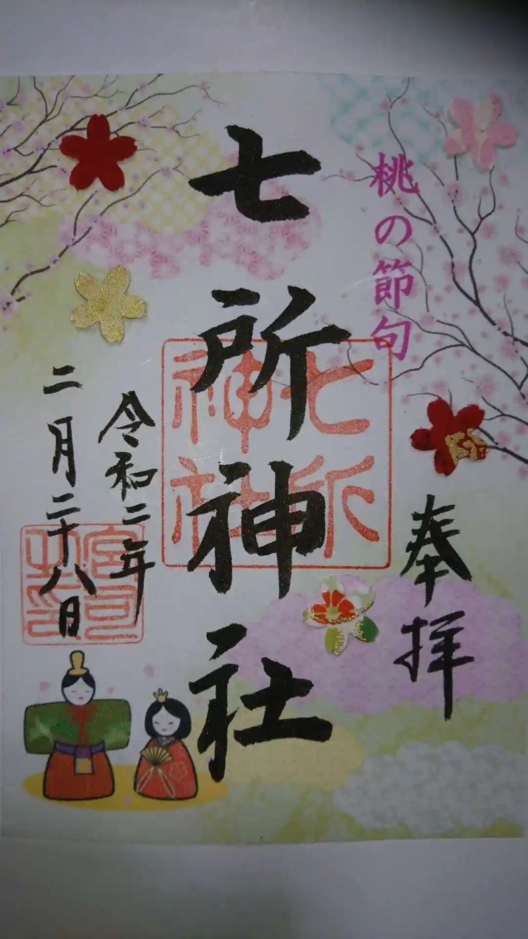 七所神社 桃の節句限定の御朱印です!
