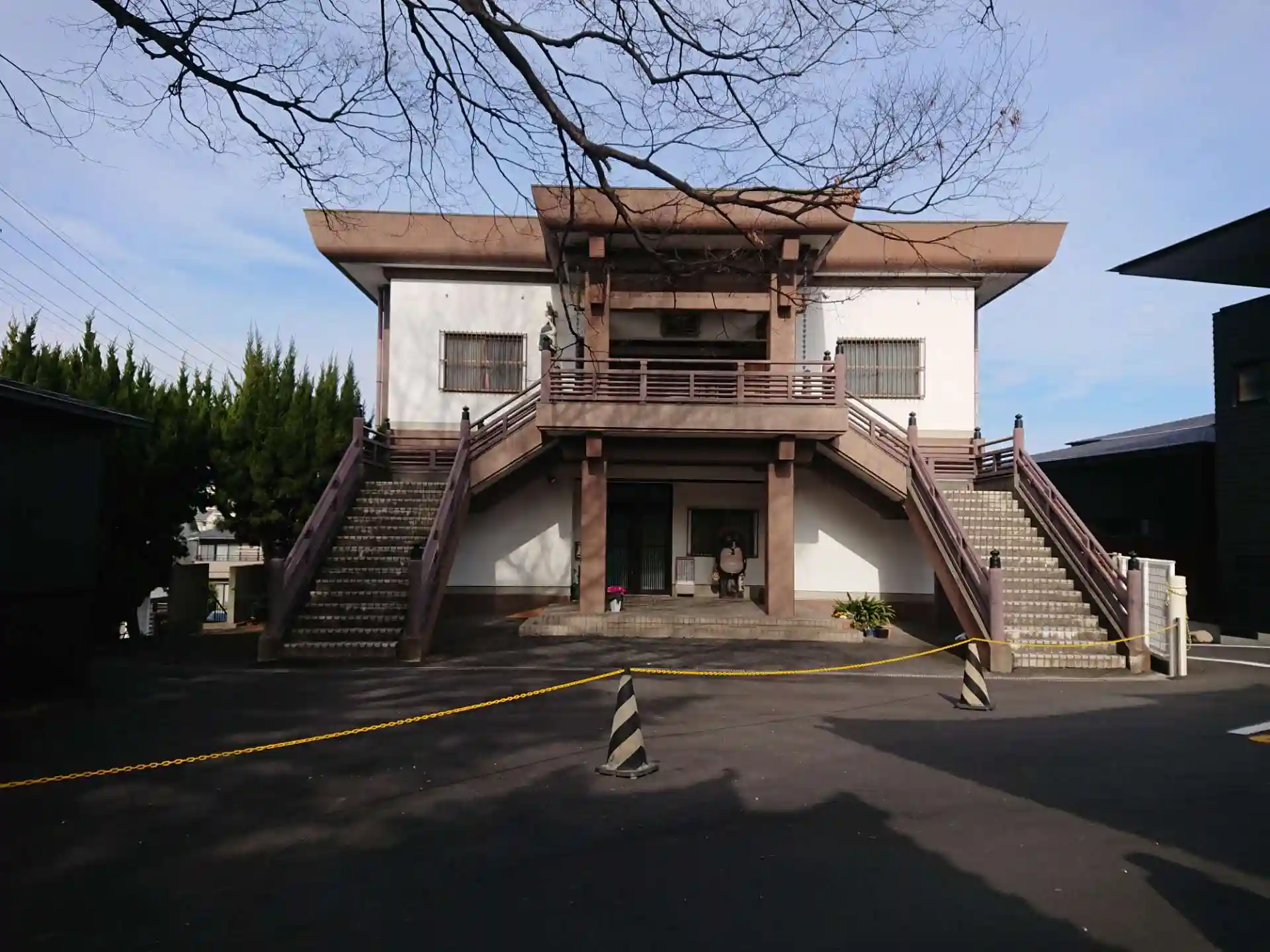 「名鉄のハイキング」の途中で寄り道しました。立派な建物ですが、なぜかロープが張ってあり近付く事ができません。