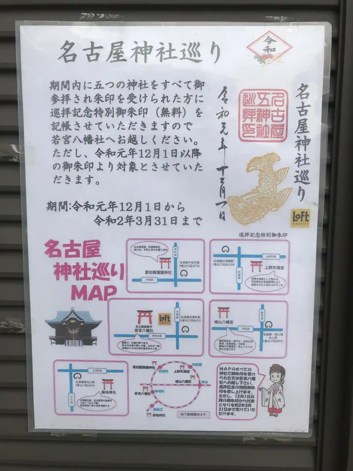 そうです!自分の御朱印帳で、日付もバラバラでいいので2019.12〜2020.3の間に五ヶ所行けばいただけます😊金鯱の御朱印がいただけるのは若宮八幡社なので、五ヶ所目を若宮八幡社にして金鯱の御朱印もその時にいただきました✨