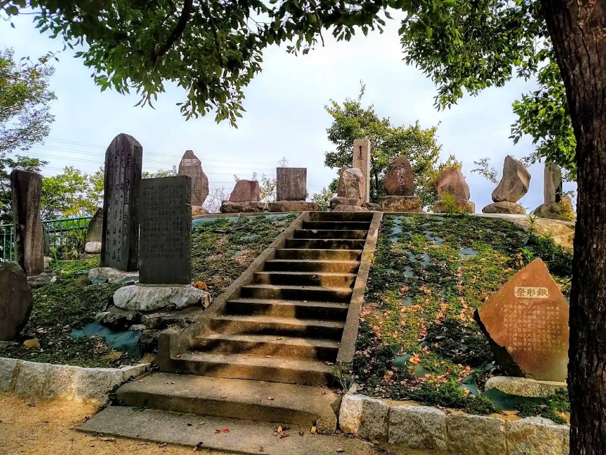 ここは、丹八山公園。桜の名所、謎の石碑が建ち並ぶ小山。
