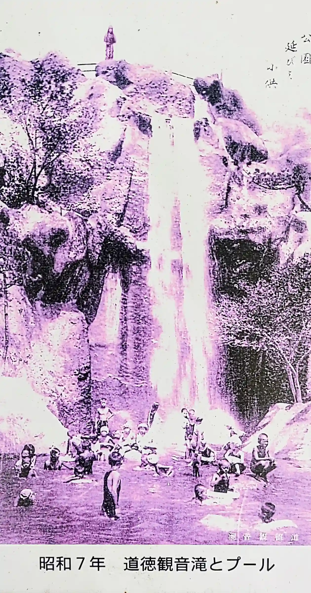 当時の写真 山の頂上に観音さまが。(写真は観音公園にある説明板より)