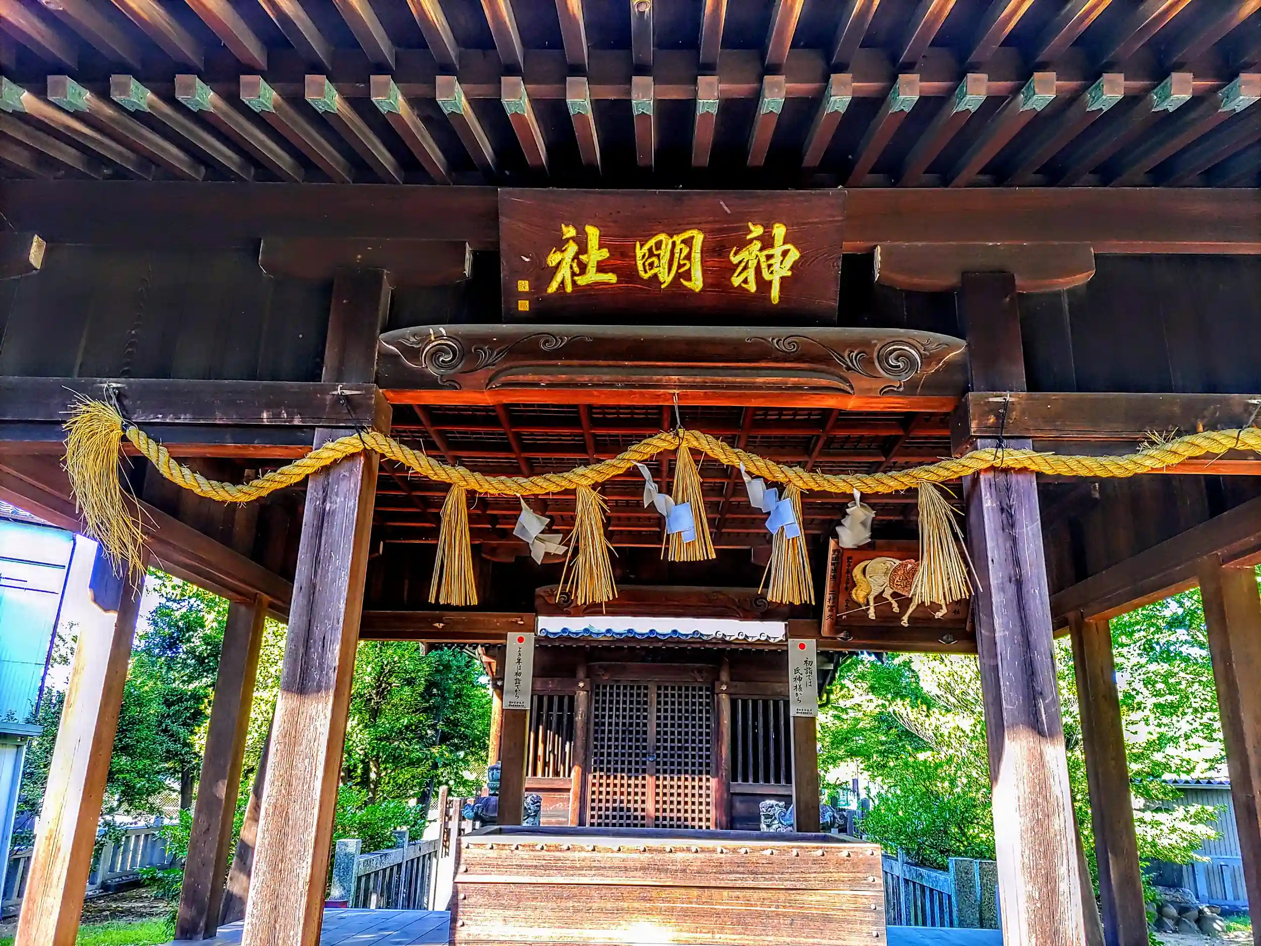 拝殿の扁額が輝いていました。