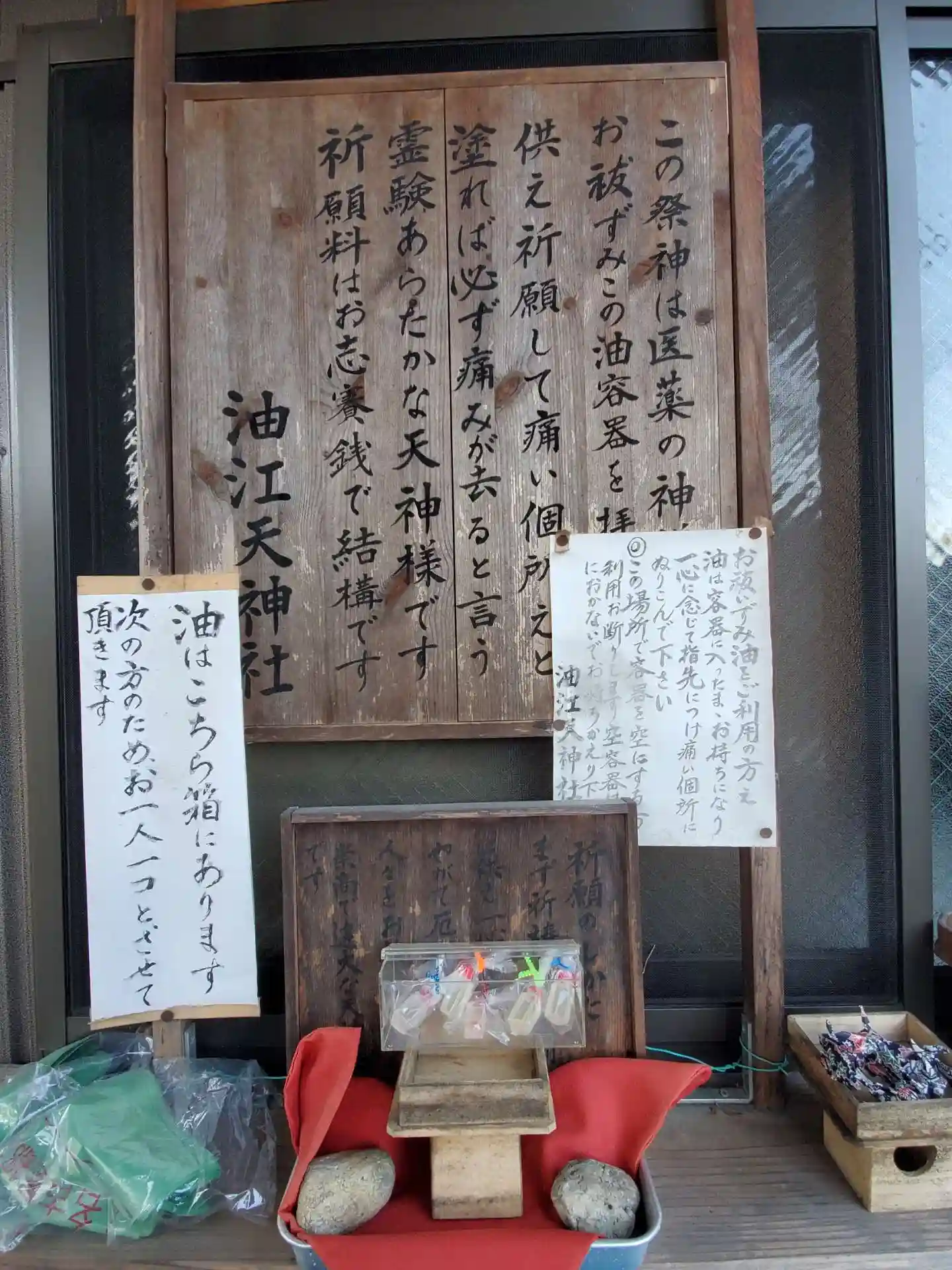 社務所前にはお祓い済みの油がありました