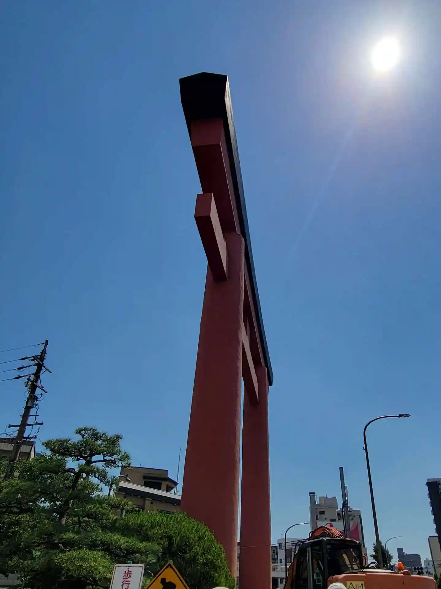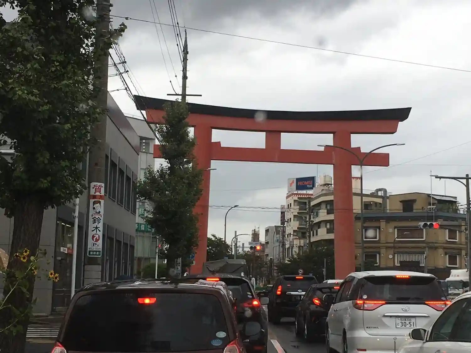 第一鳥居です。ちょうど停車したので慌てて車中から撮りました。完成当時は日本一の高さだったそうです。