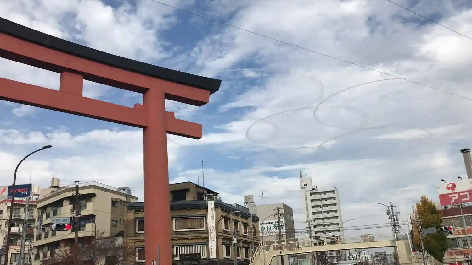 わかりにくいですが右側にブルーインパルスが遠くで飛んでるところを鳥居と一緒に取れました✨