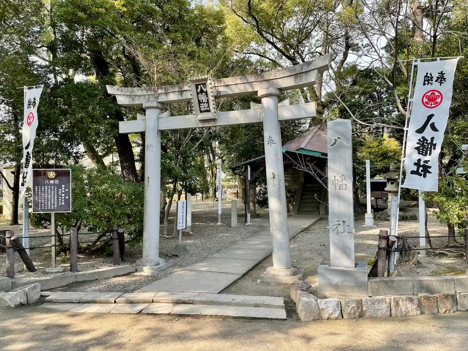 中村公園内に鎮座する神社で、祭神は応神天皇である。
