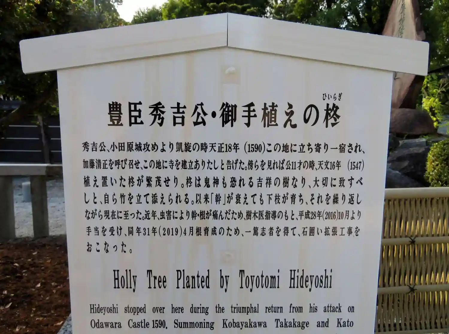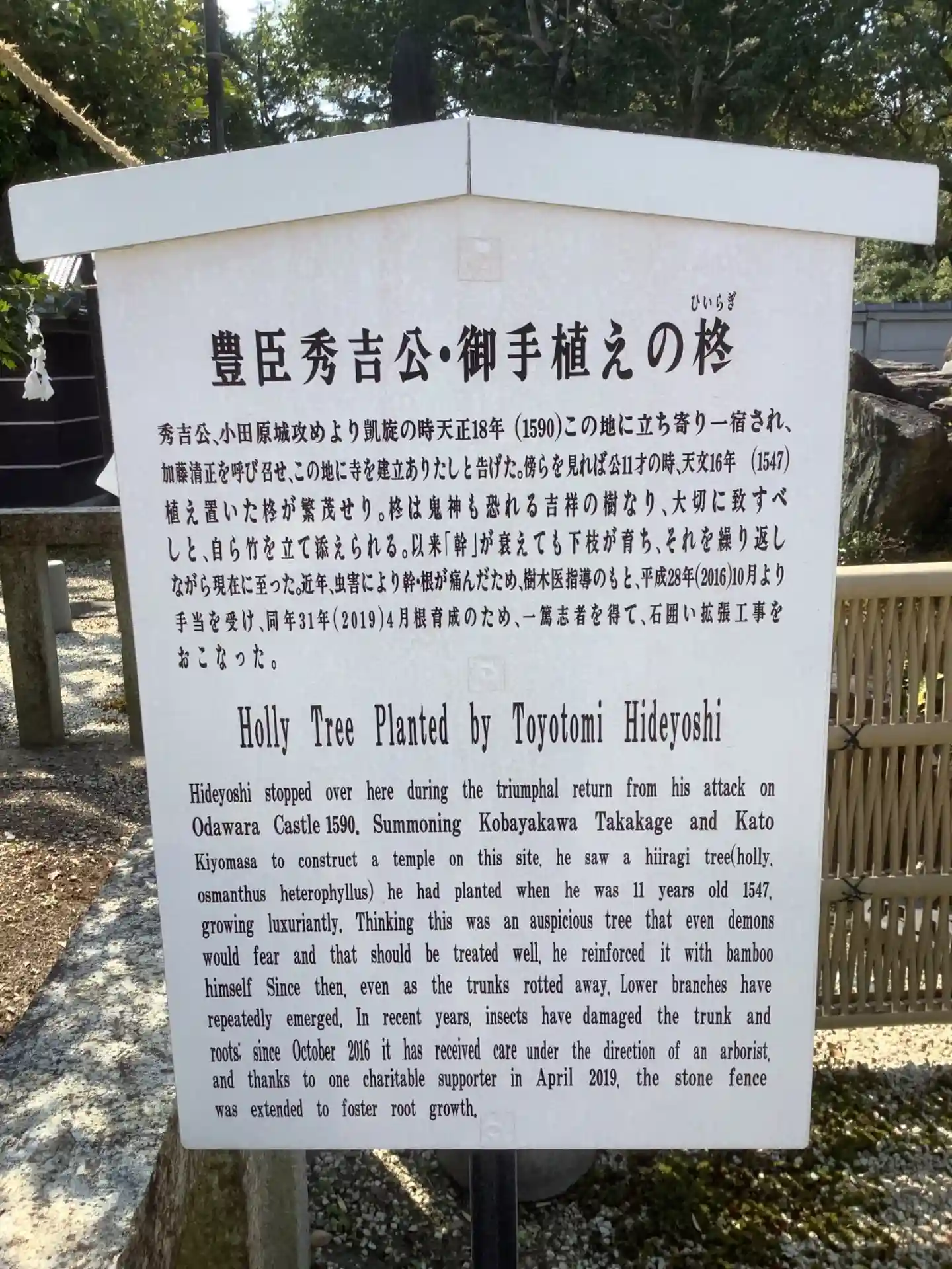 豊臣秀吉公お手植えの柊について