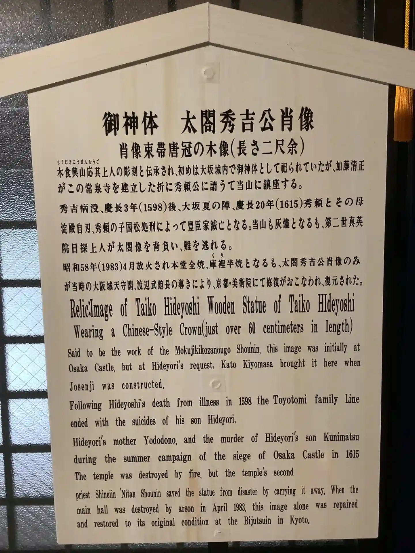 | ご本尊 | 久遠実成の本師釈迦牟尼仏 豊国大明神 鬼子母神 大黒天 子安地蔵尊 | |