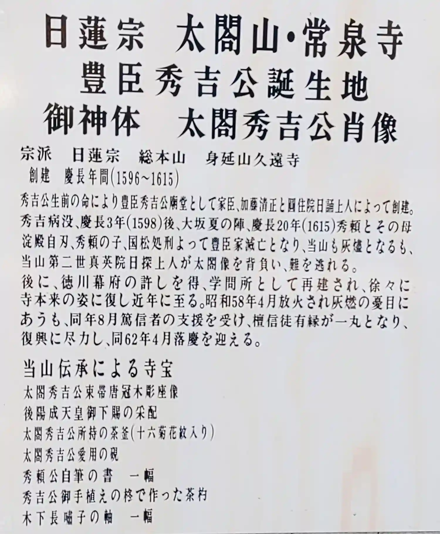 日蓮宗 太閤山 常泉寺