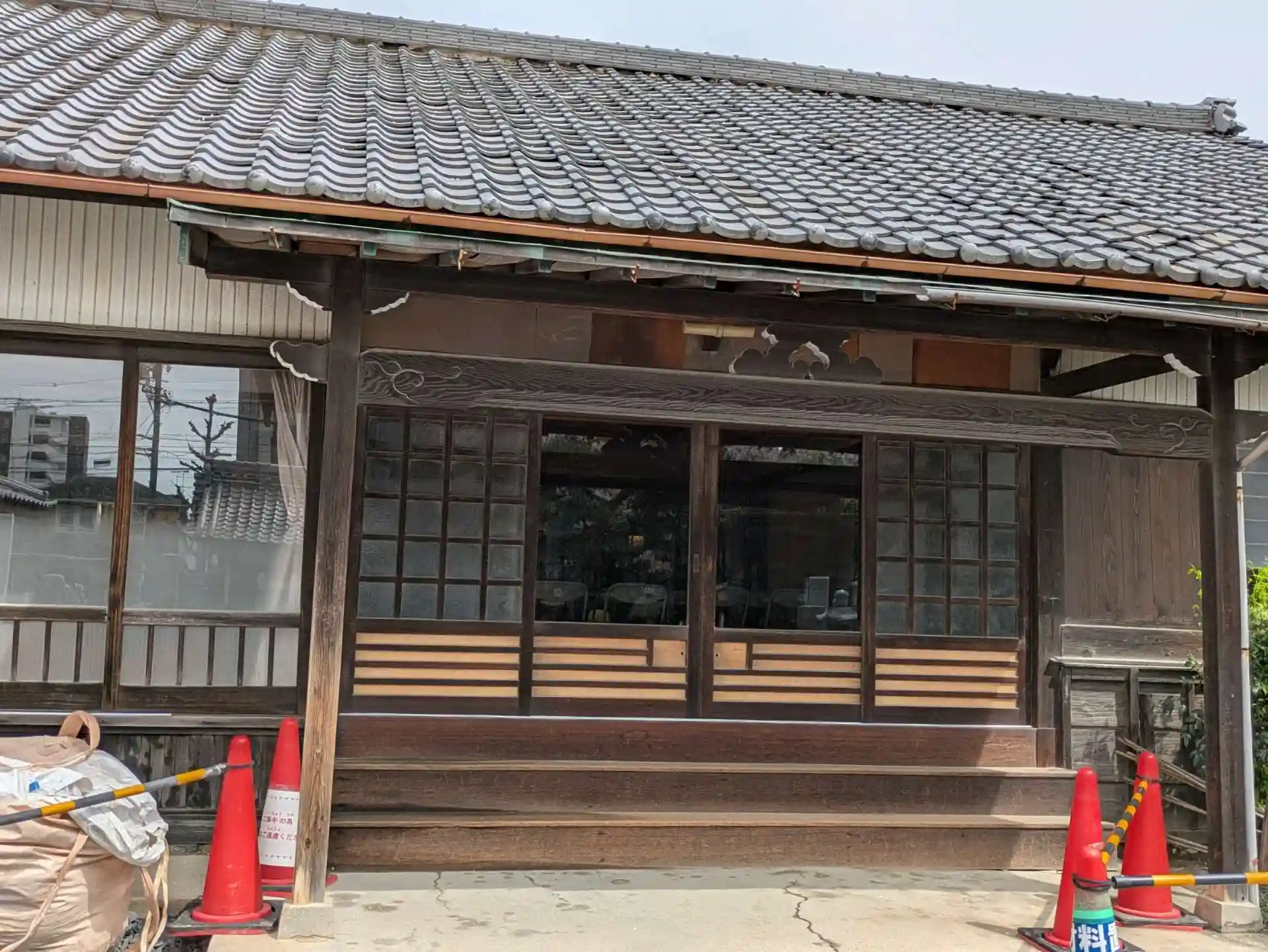境内はなにやら 工事中のようで コーンや機材などが置いてありました