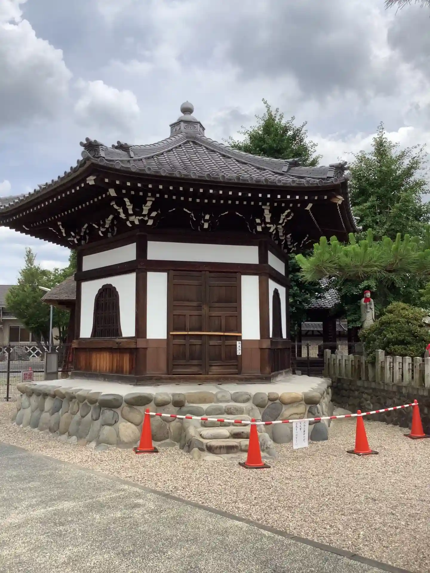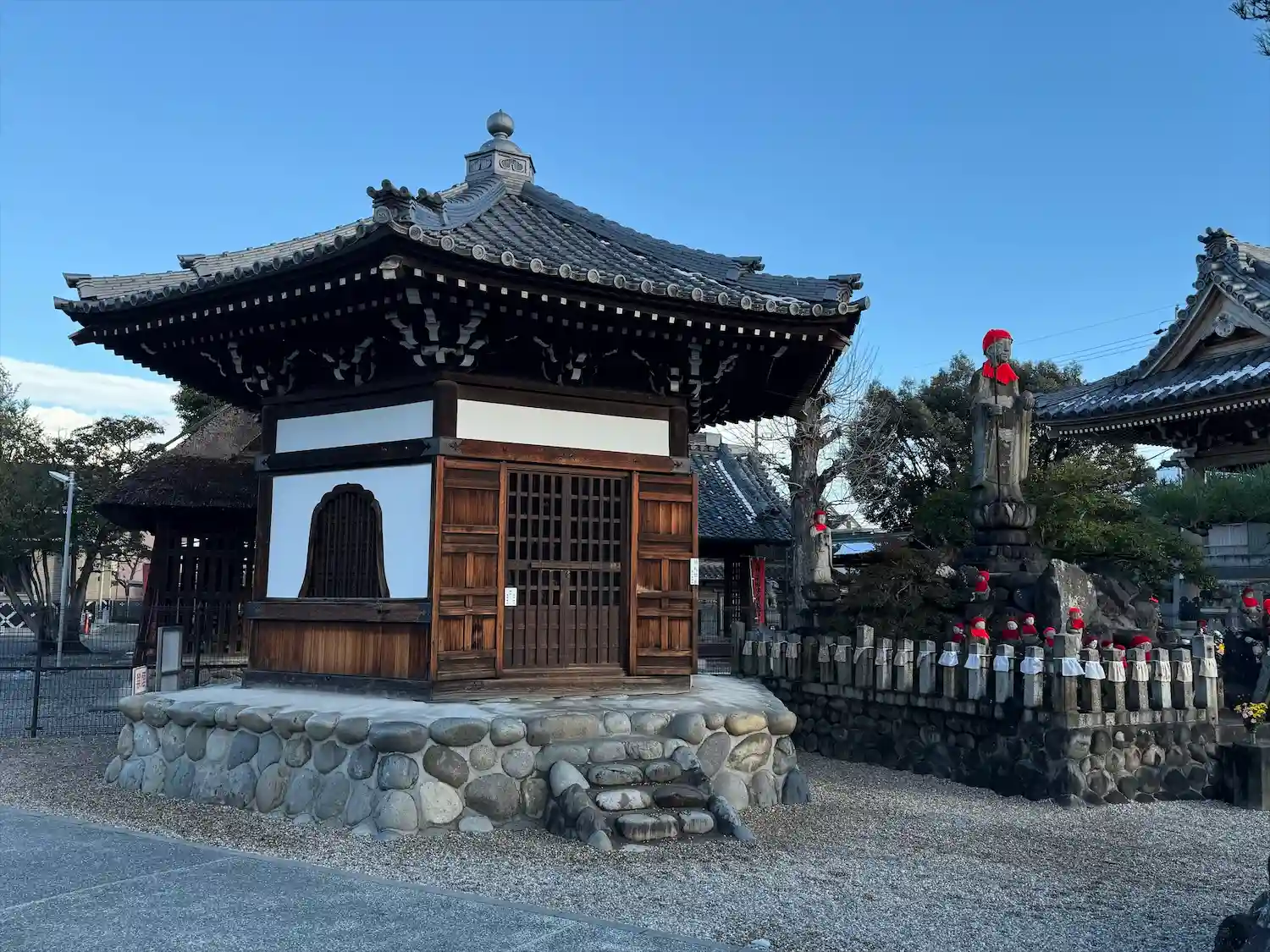 六角堂です。昭和47年にこちらの中の木箱から1,024体の大量の円空仏が発見されました。どうやら仁王像を造られた時の余った木を使って彫られたようです。