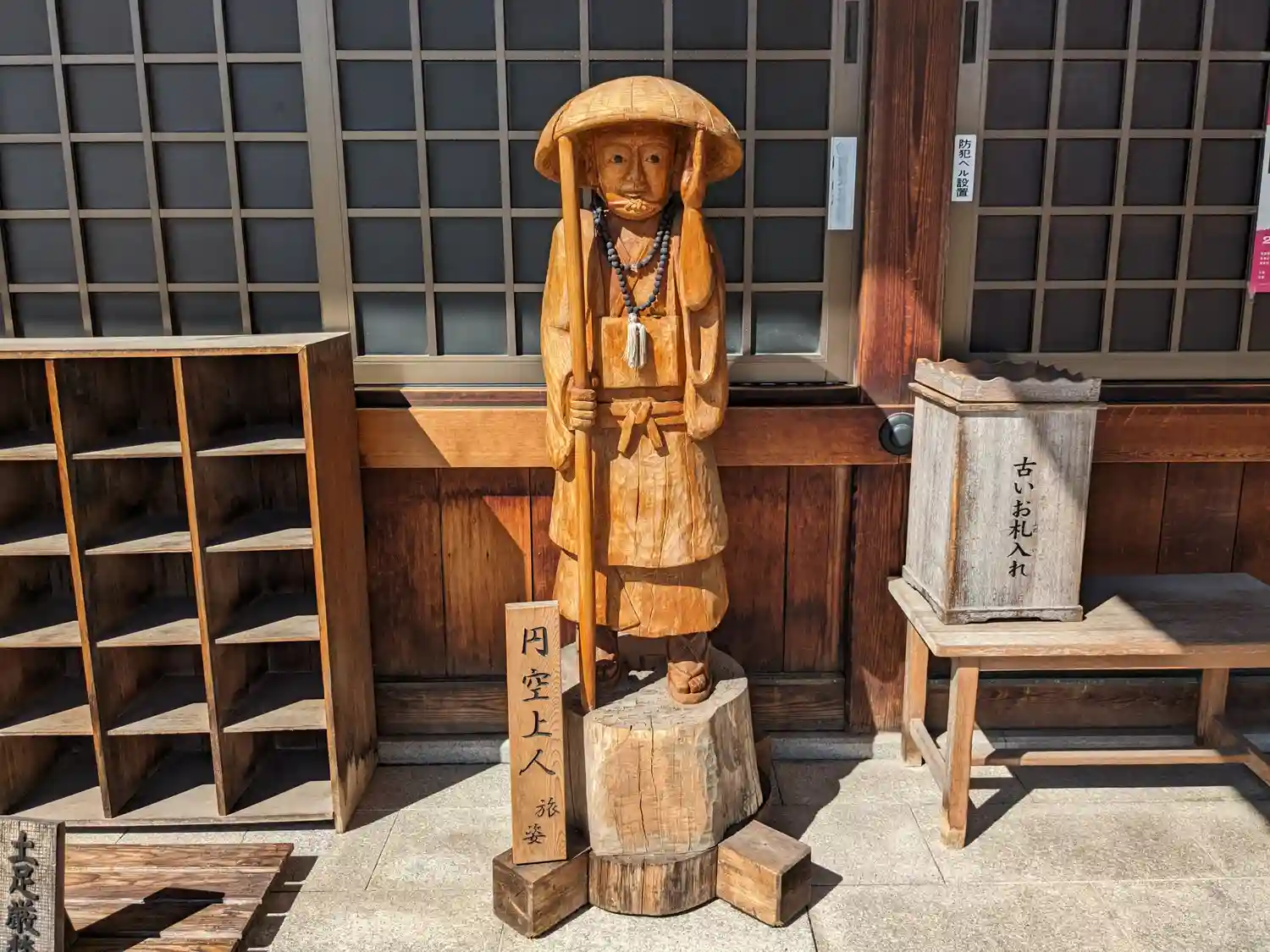 本堂前に、円空上人旅姿が・・微笑ましく迎えて下さっているようです。