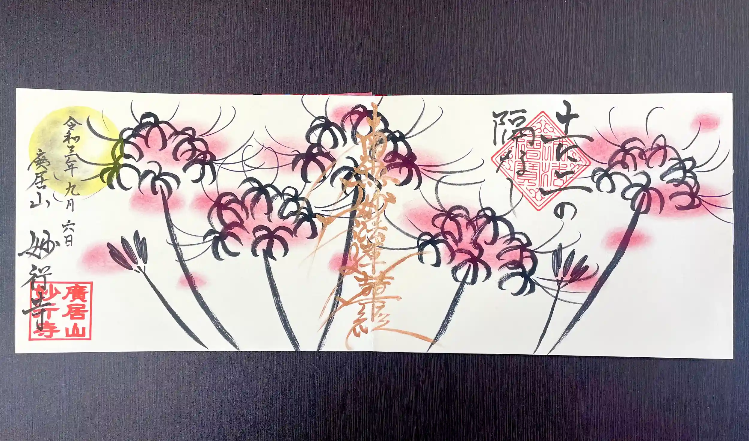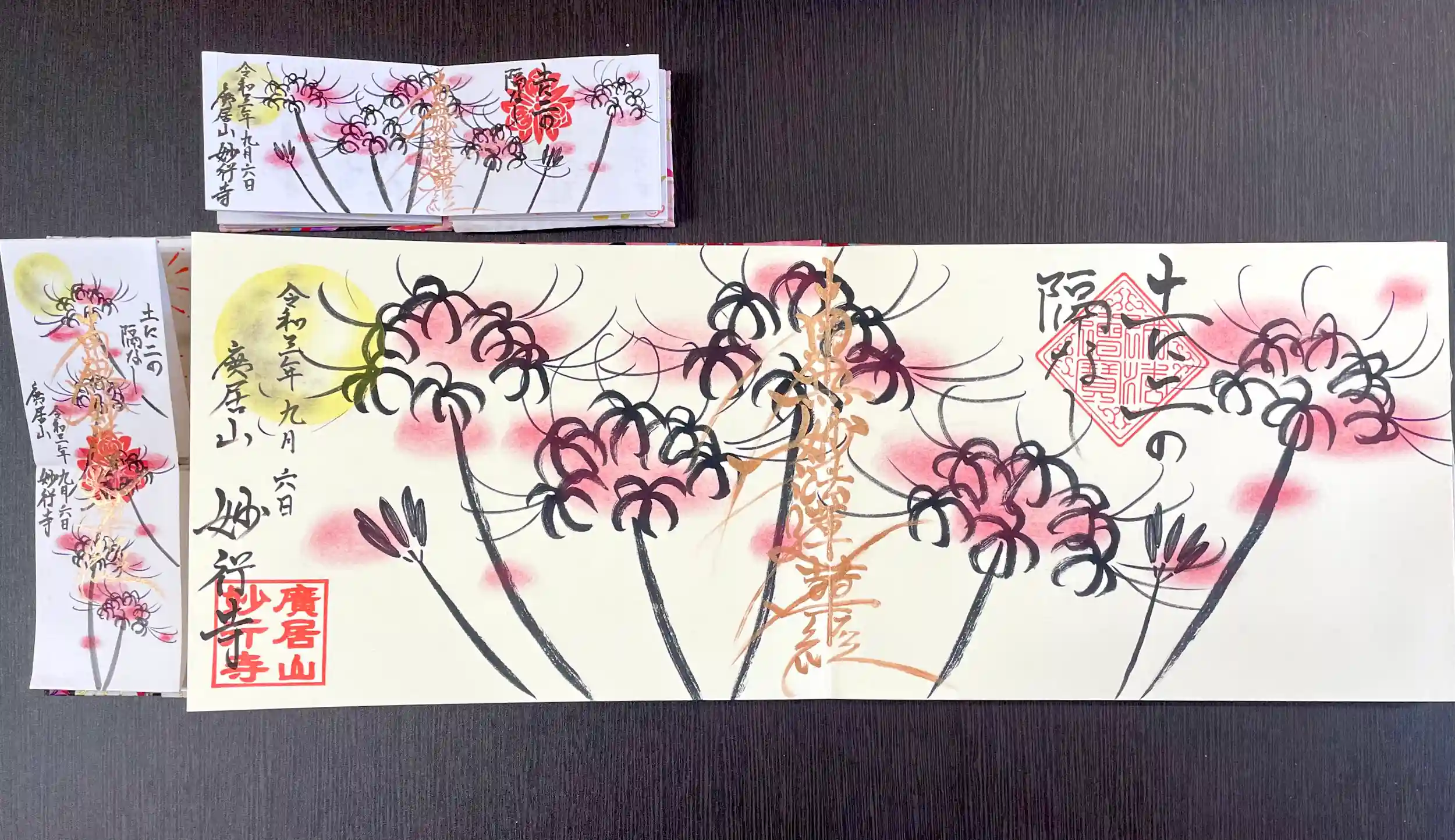 こちらは、9月限定のイラスト御朱印(彼岸花)の、4面サイズです。( ¨̮ )
