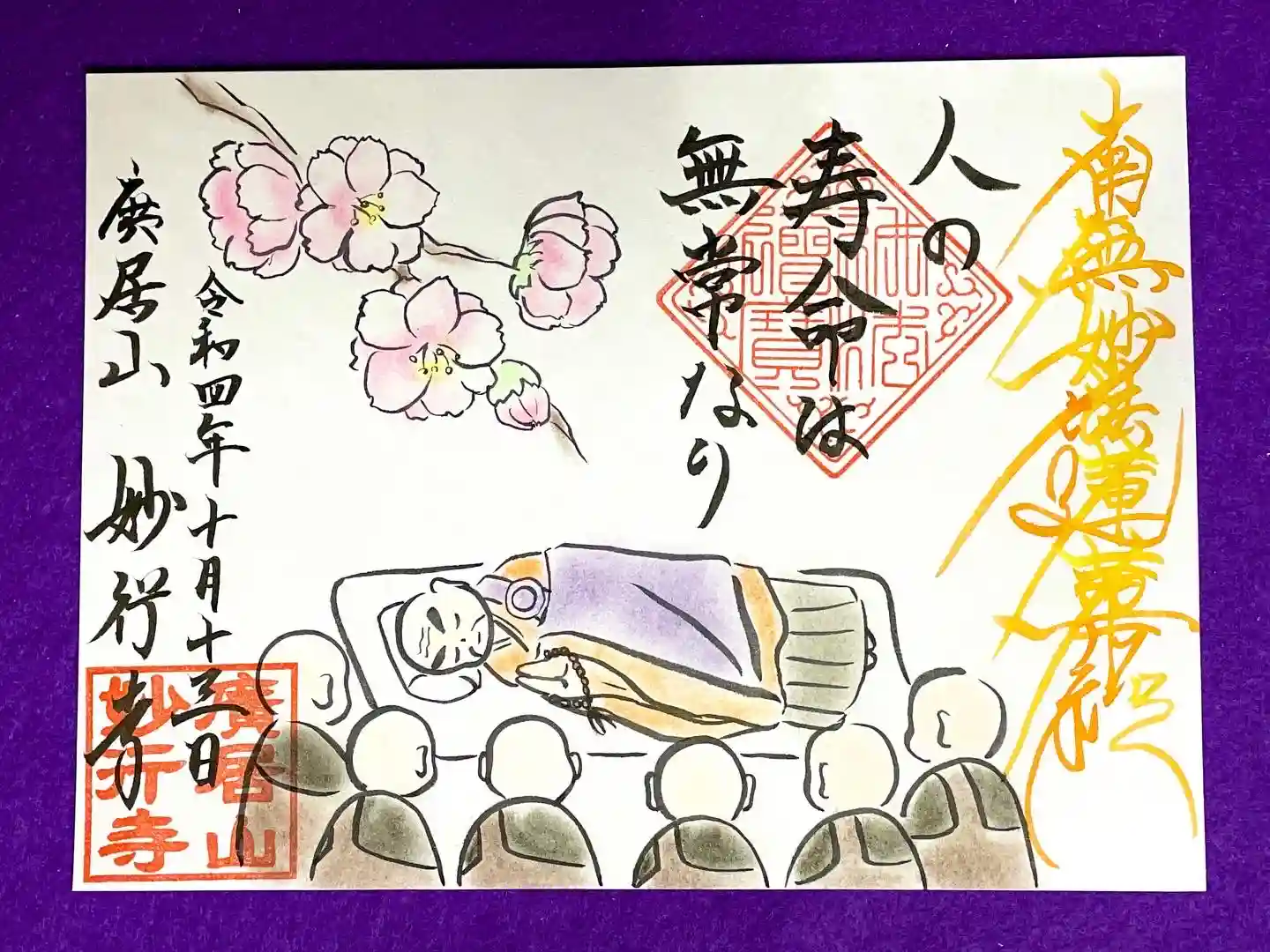 10月の季節のイラスト御朱印は、御会式と桜です。