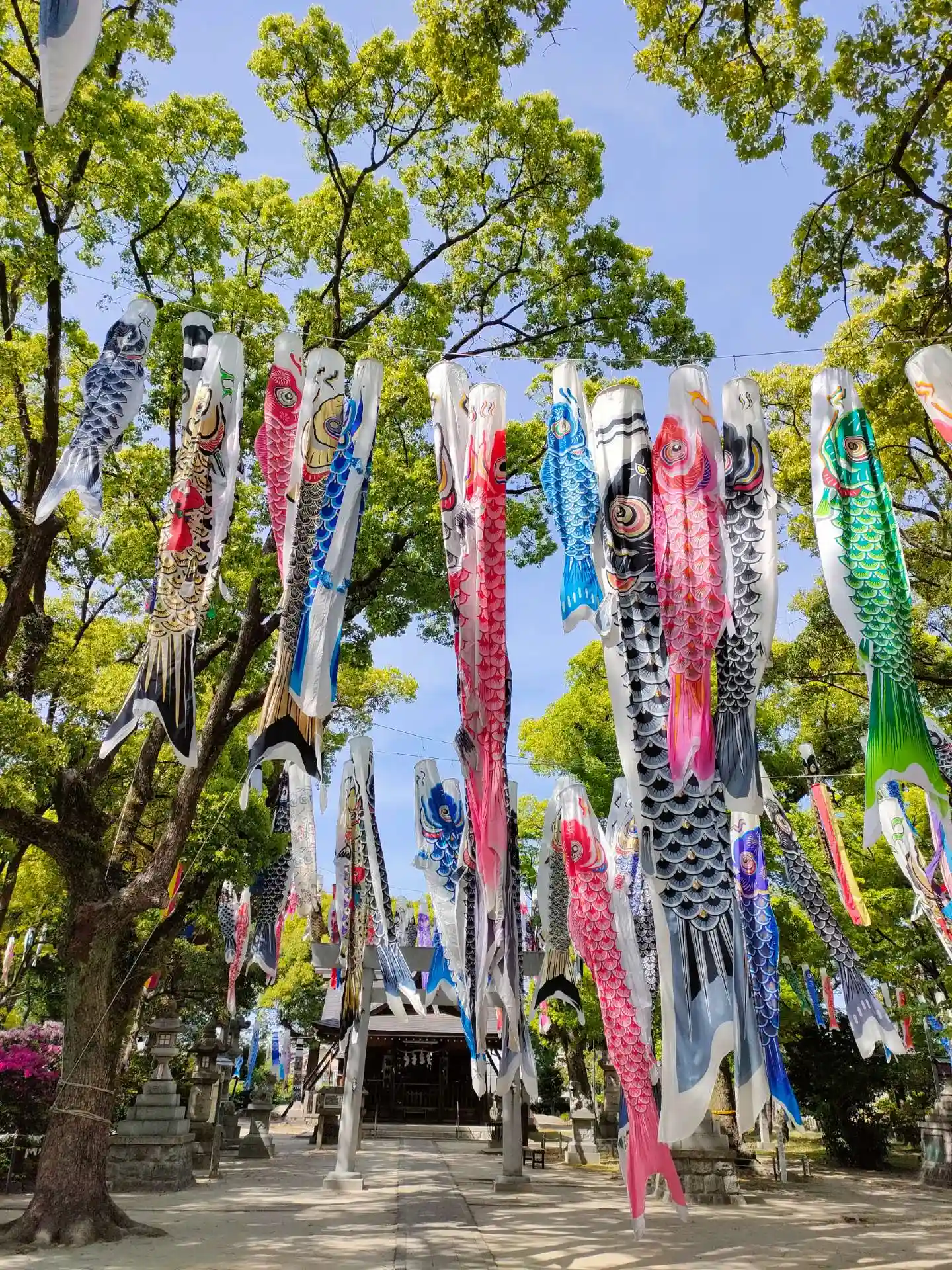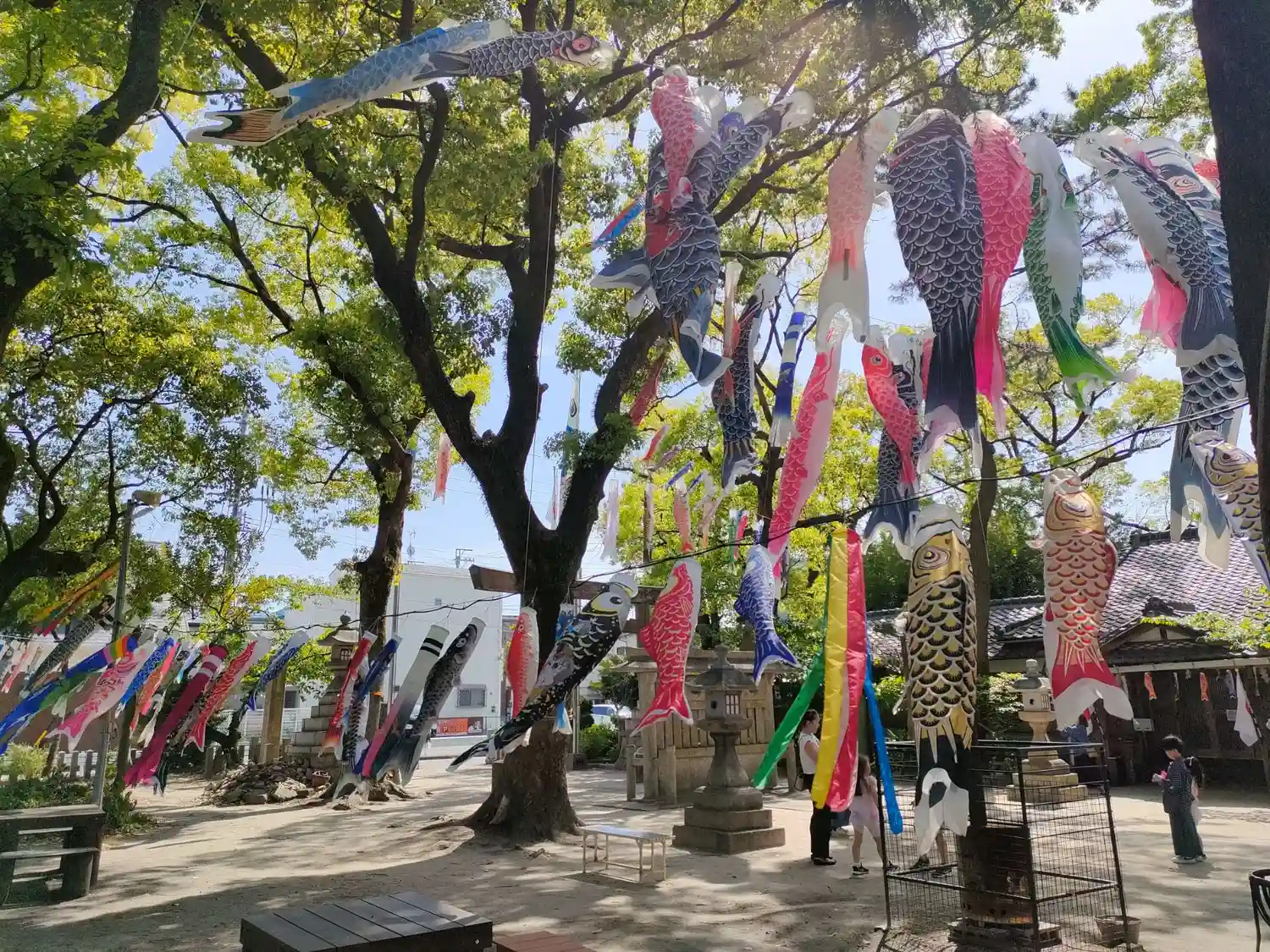 境内にはたくさんの鯉幟が