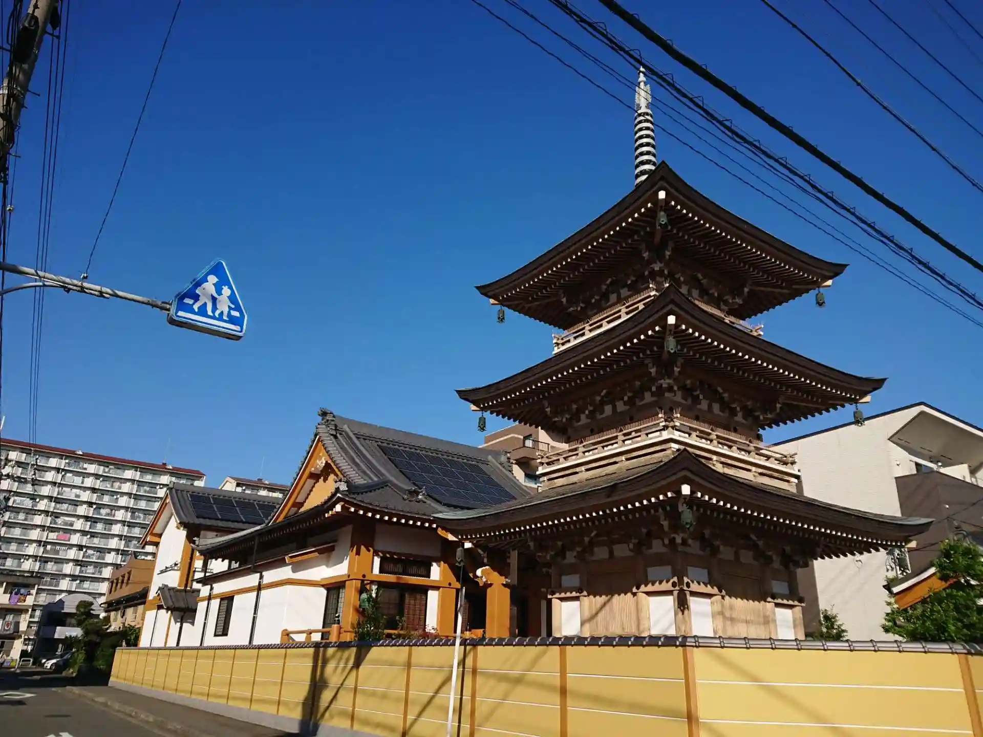 境内には三重の塔があります。まだ新しくとても立派です。道路に面しているので、通りすがりでも見ることができます。