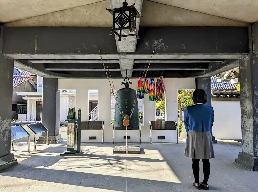 大きくて立派な本堂のある寺です。鐘は少し高い所にあるものだと思っていましたが、境内の中で水平移動で…