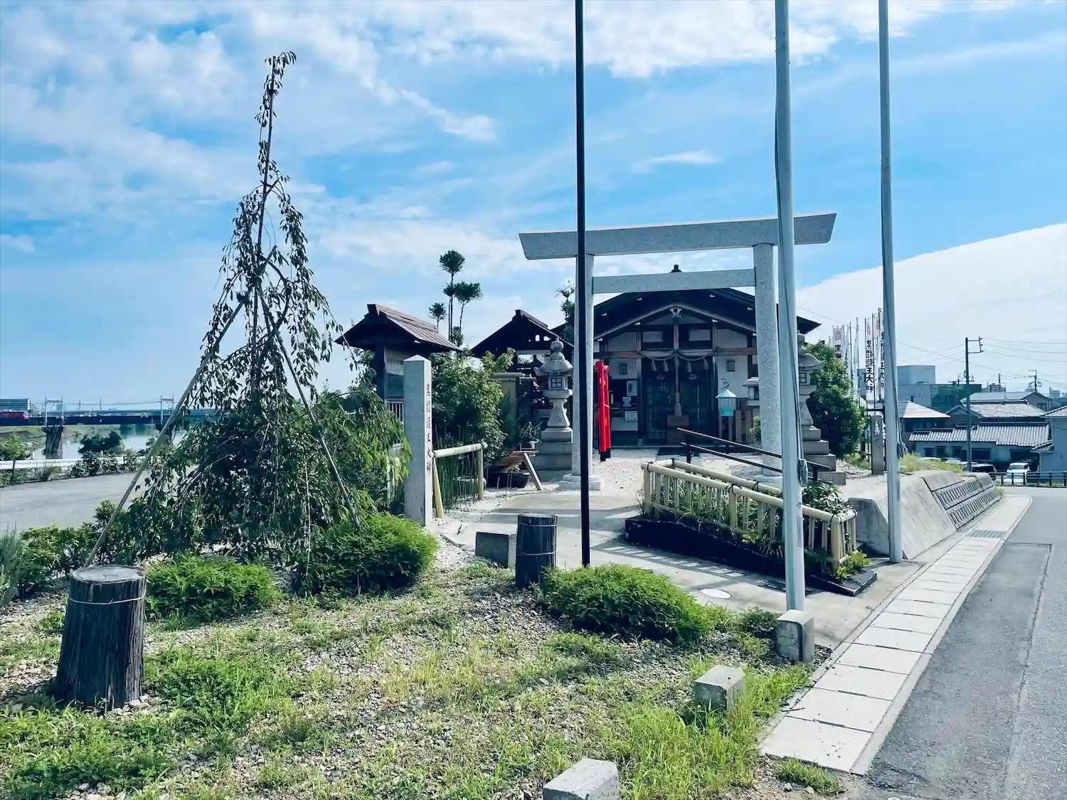 庄内川の堤防にある、まだ綺麗な神社です。橋を渡るとき見えるので、すぐにわかります。