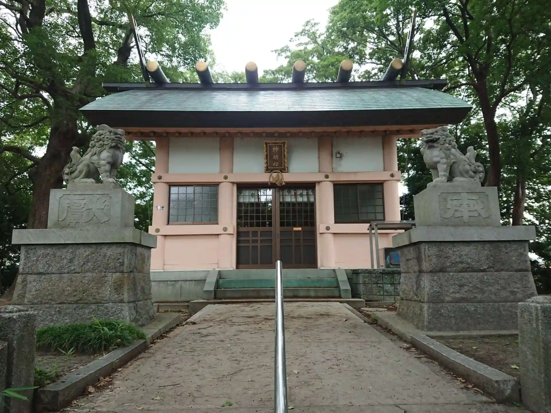 ピンクの社殿が綺麗です。