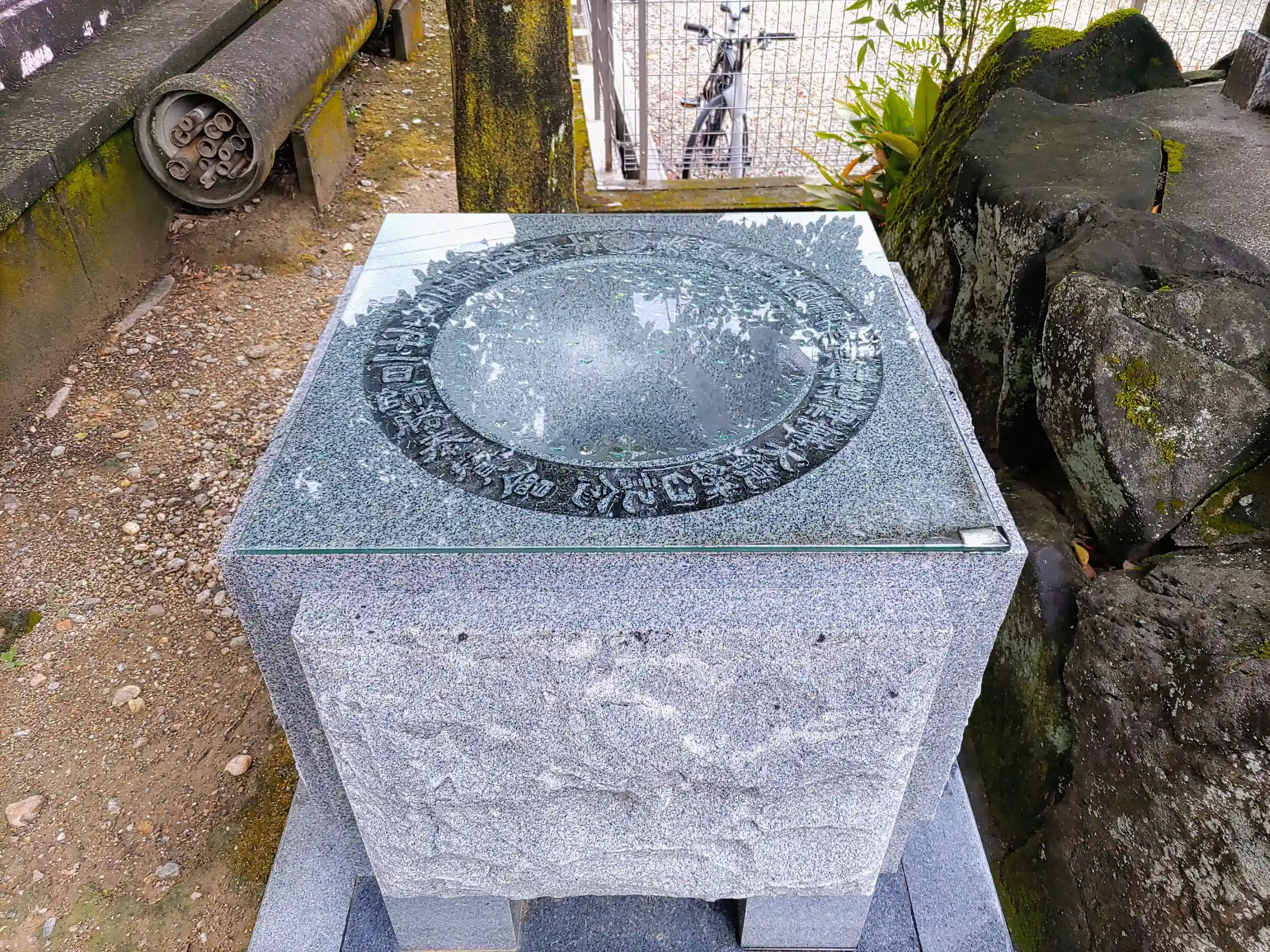 小さな蕃塀だけど手水舎の屋根はでかい。