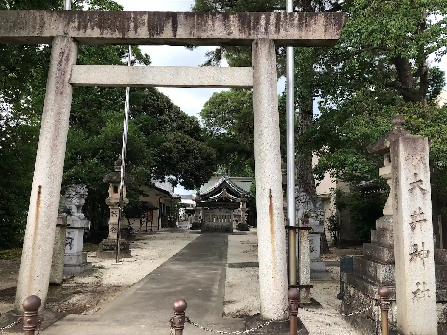尾張国山田郡の式内社です。全国には同名の式内社がいくつもありますが、池、川や井戸などの水に関連することが多く、この神社は大井という名前の池のそばに建てられたことが由来となっています。