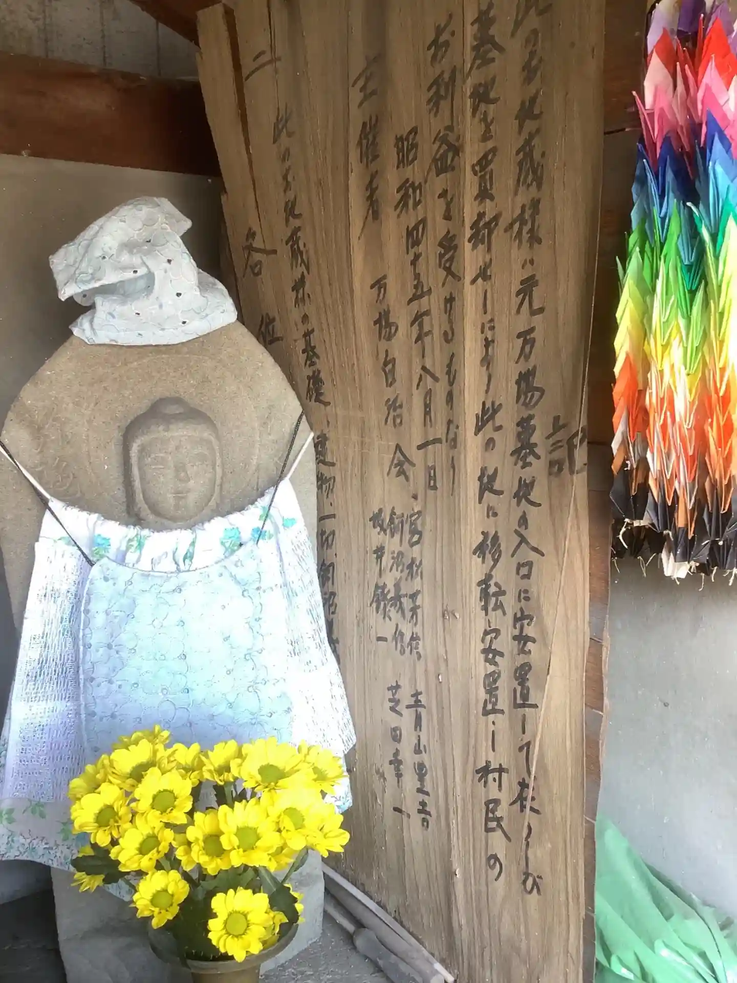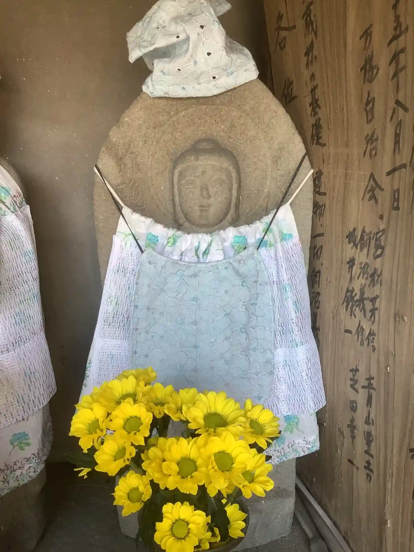 お地蔵様の前掛けやお花が生けてあるので誰彼がお手入れされていますね。