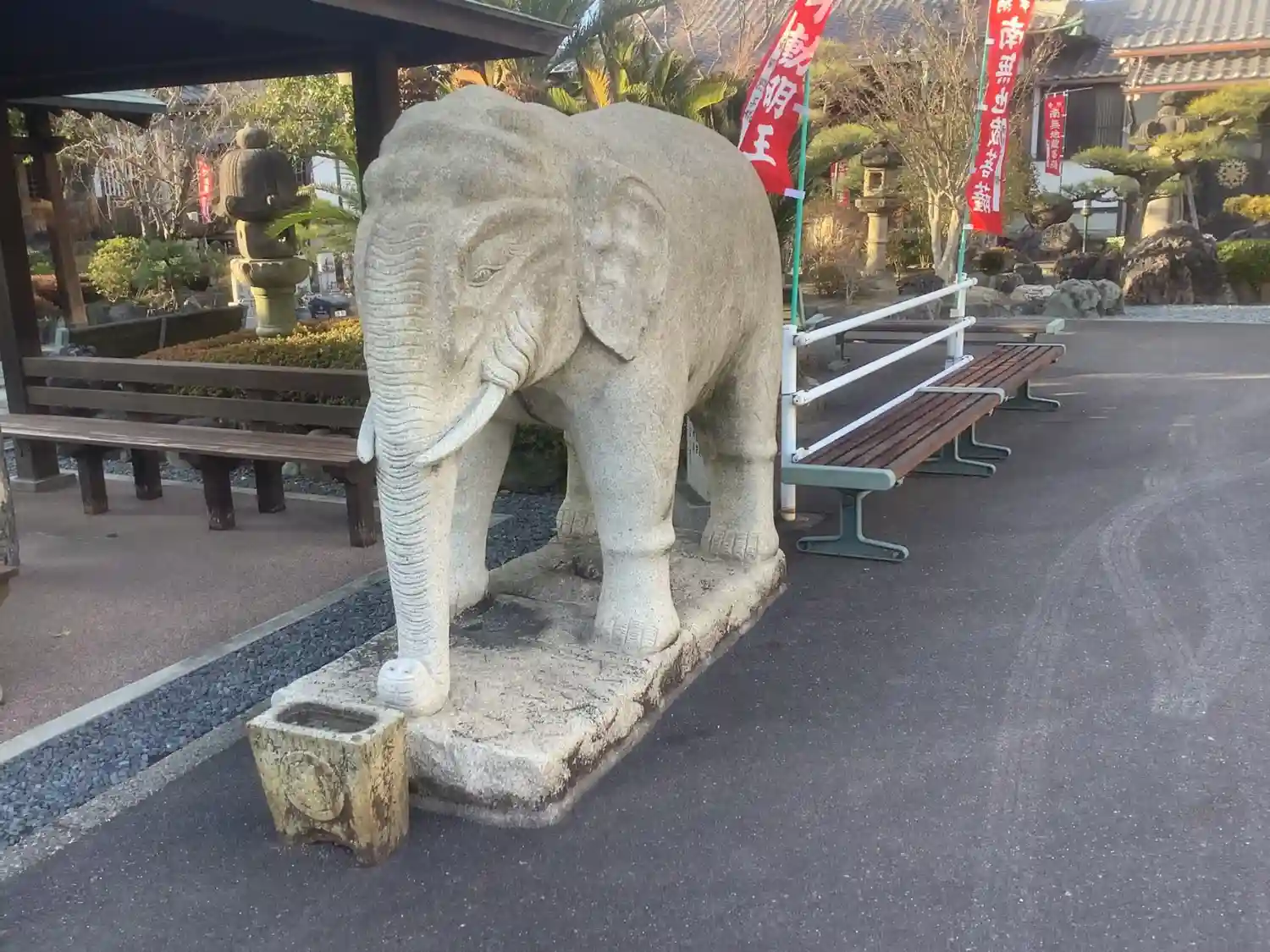 様々な像が置かれており象の像も。