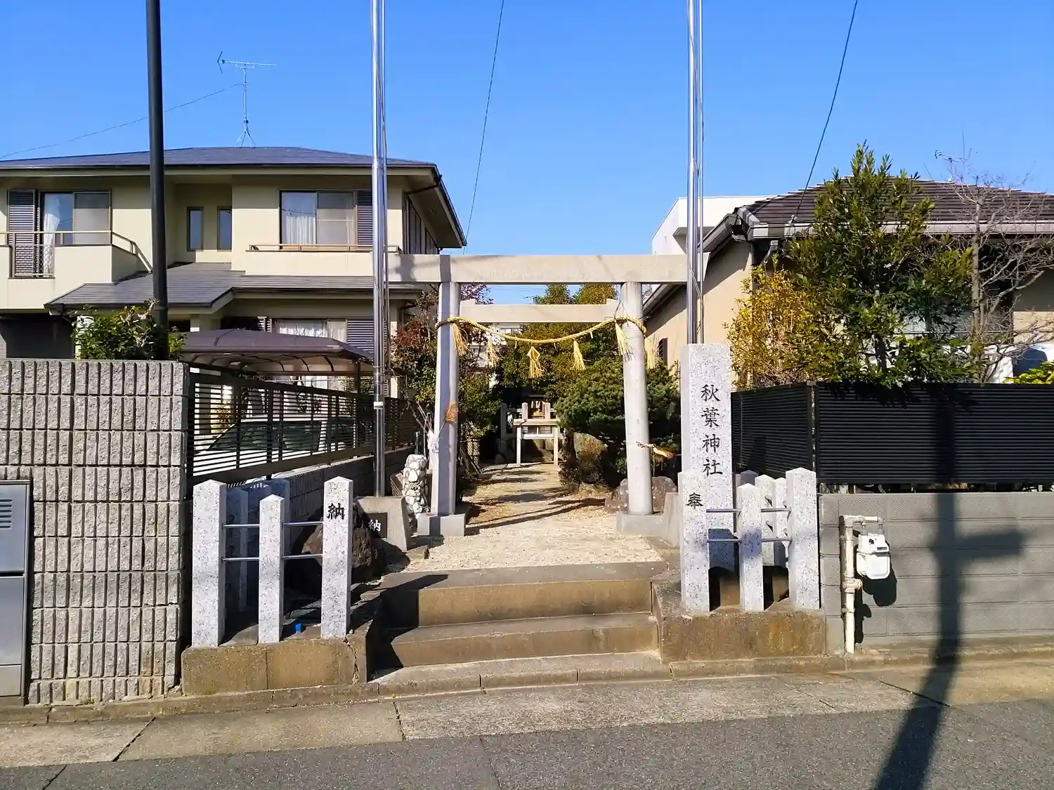 狭い神社です。民家と民家の隙間に神社ができたのでしょうか?小さい神社の両脇に民家ができたのでしょう…