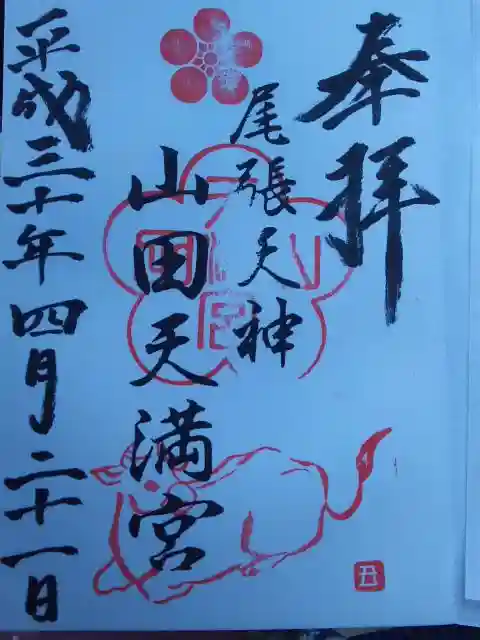 <山田天満宮の御朱印>