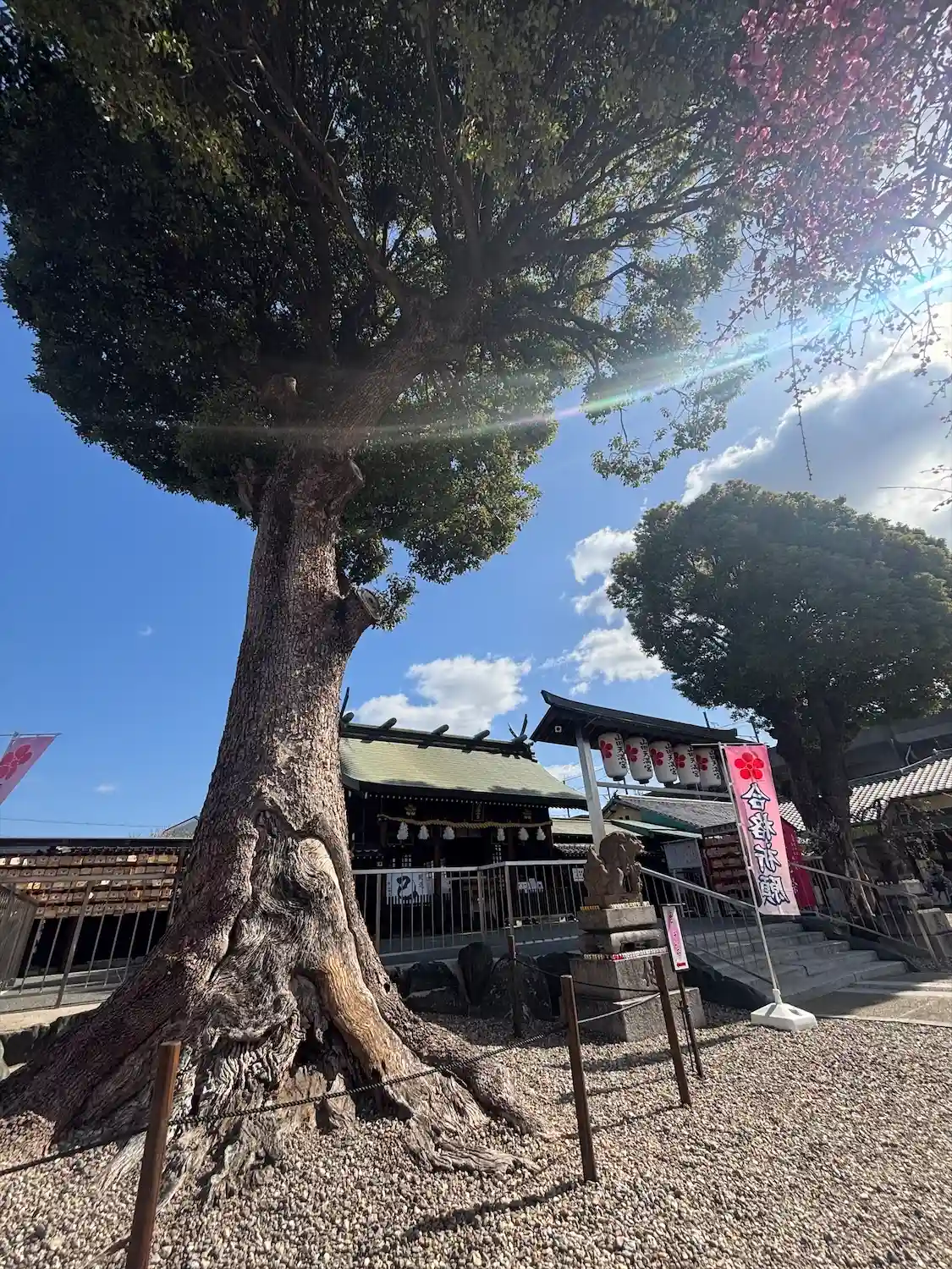 風が強く少し肌寒い日でしたが、梅の花が咲きほこり境内は参拝客で賑わっていました。