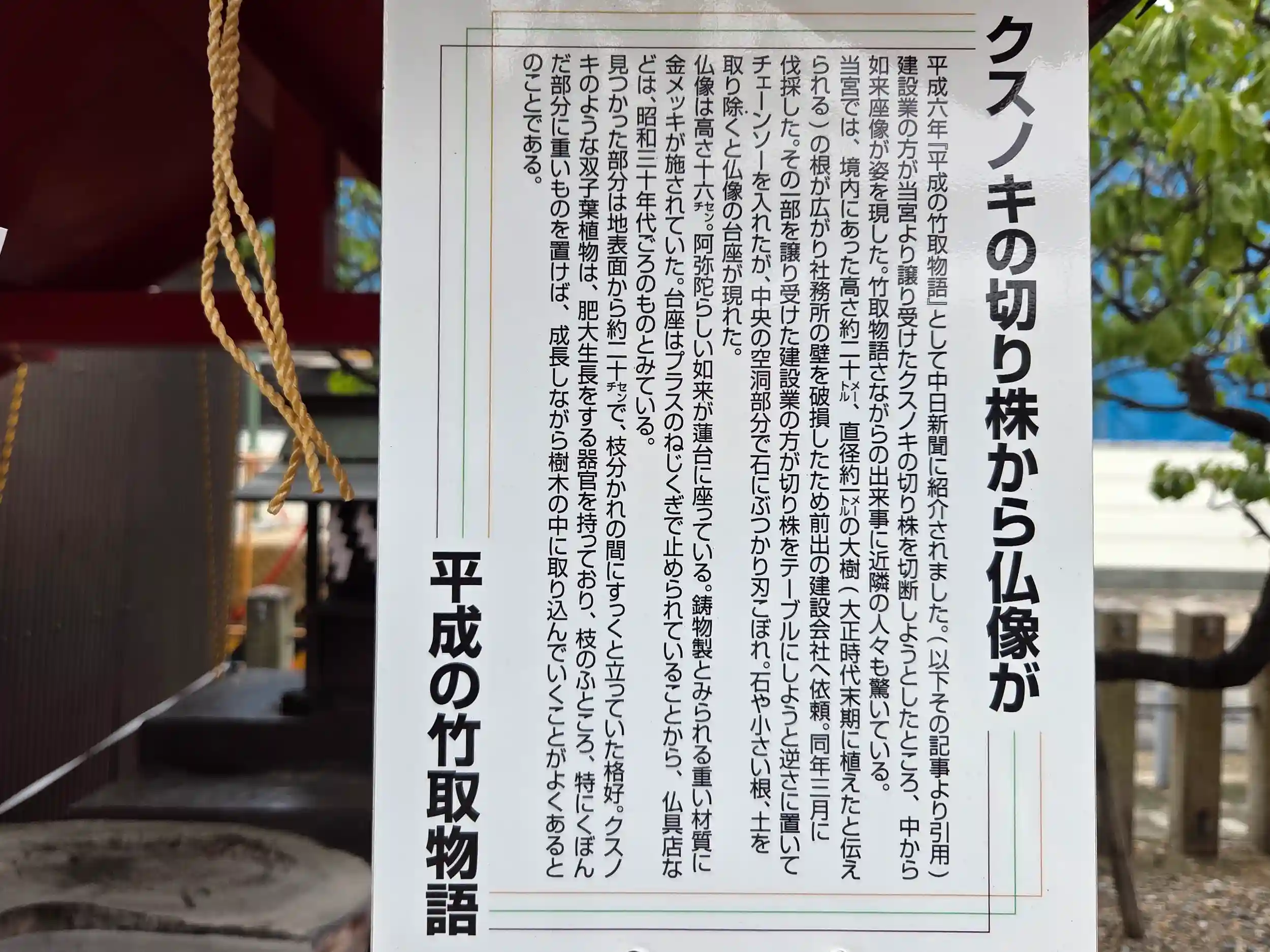 このクスノキの切り株から仏像が出てきたそうです