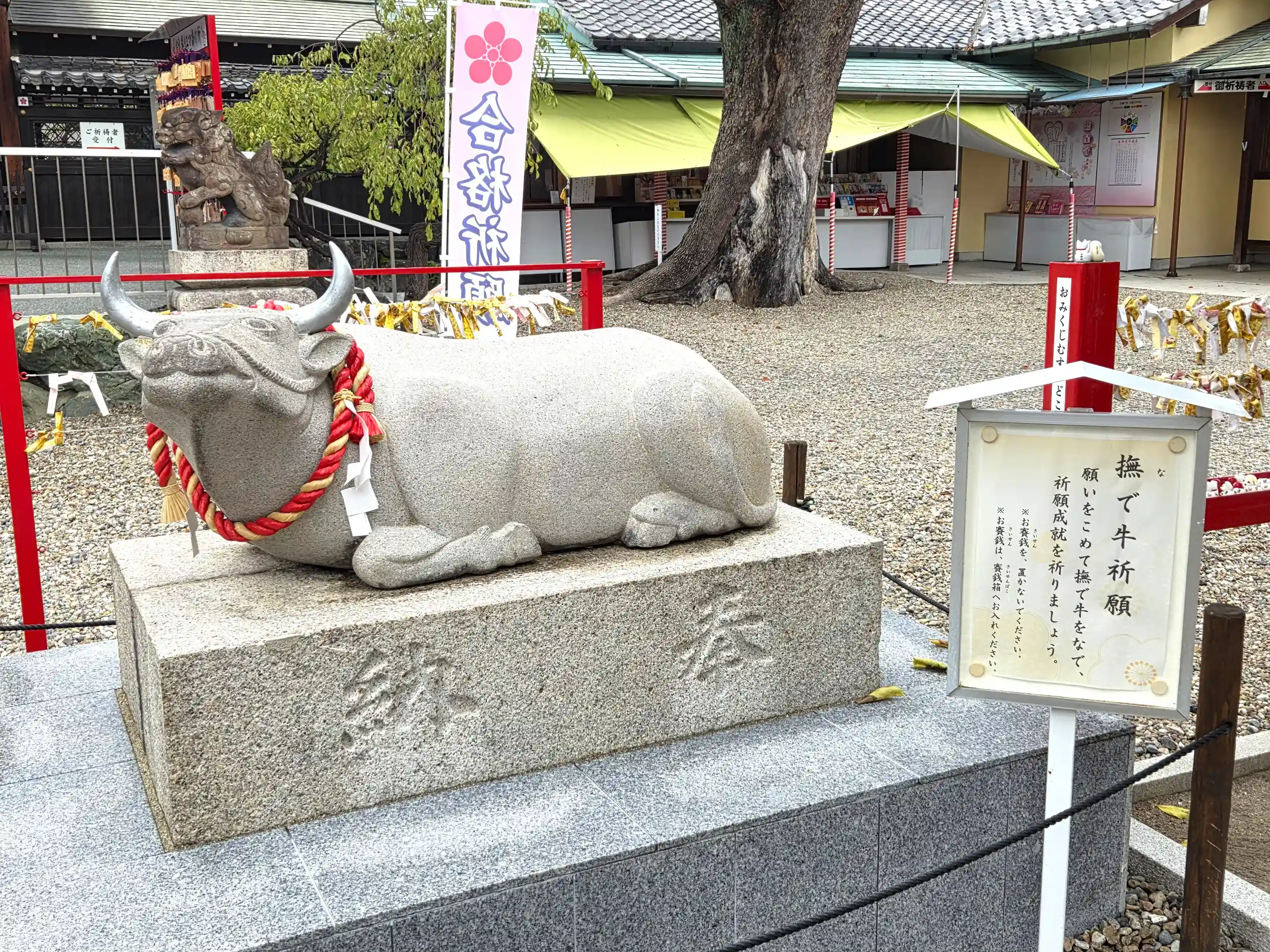参道両脇には撫で牛さん