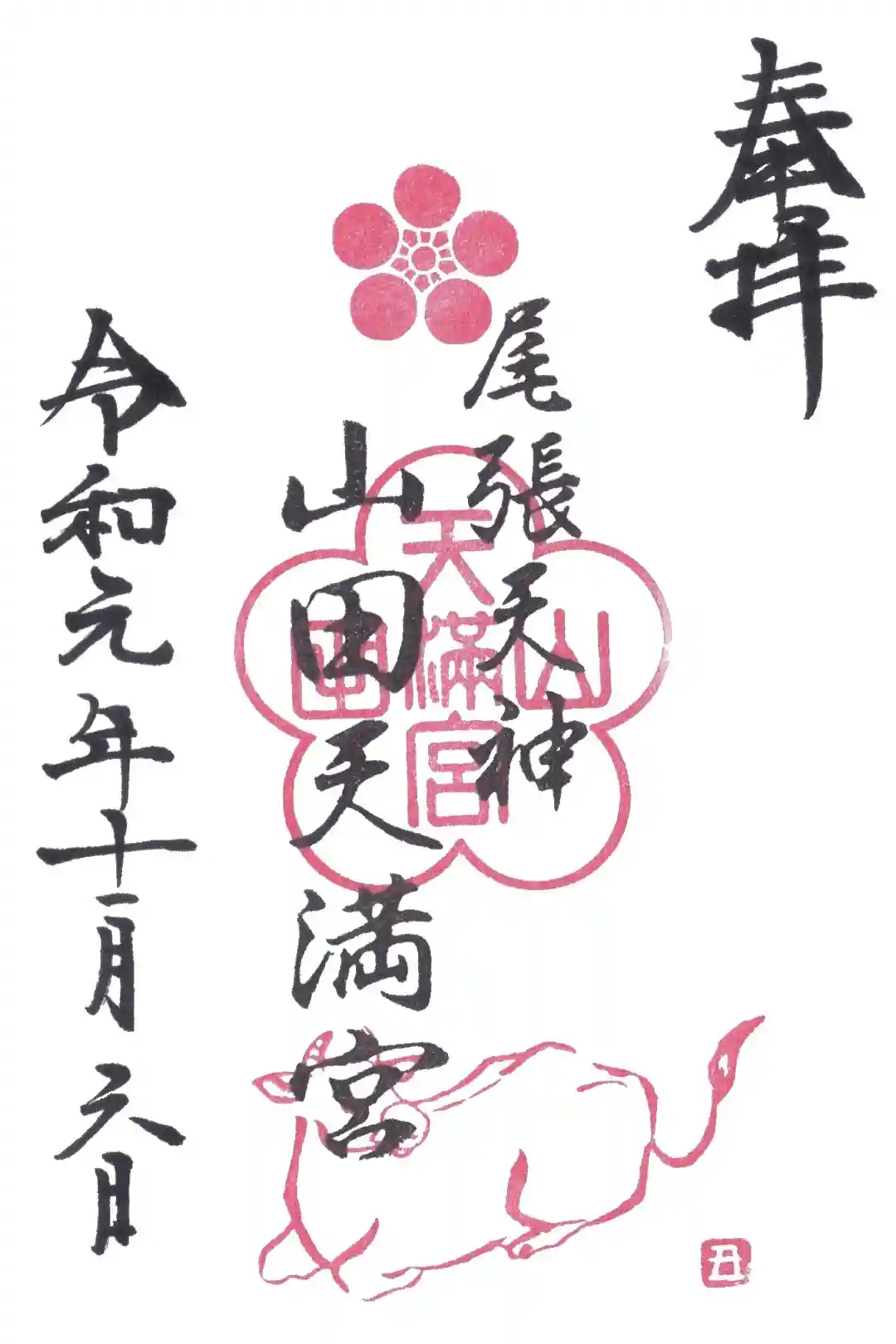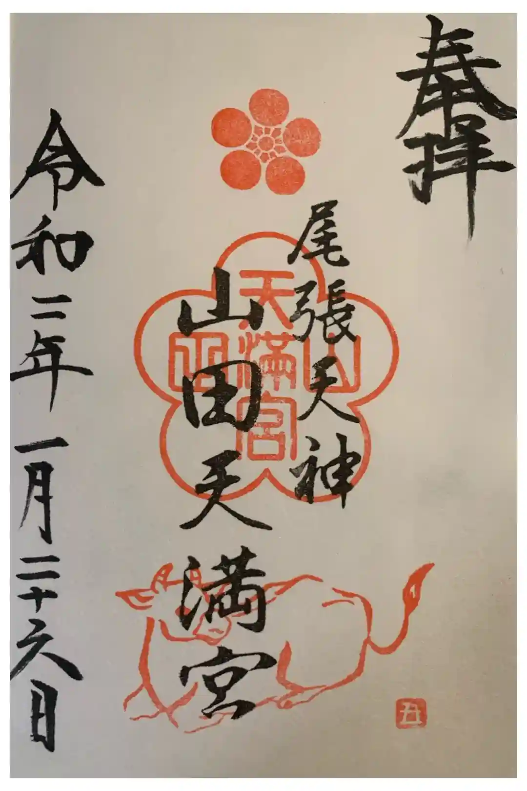 こちらで頂けた御朱印は2体で、この山田天満宮と、