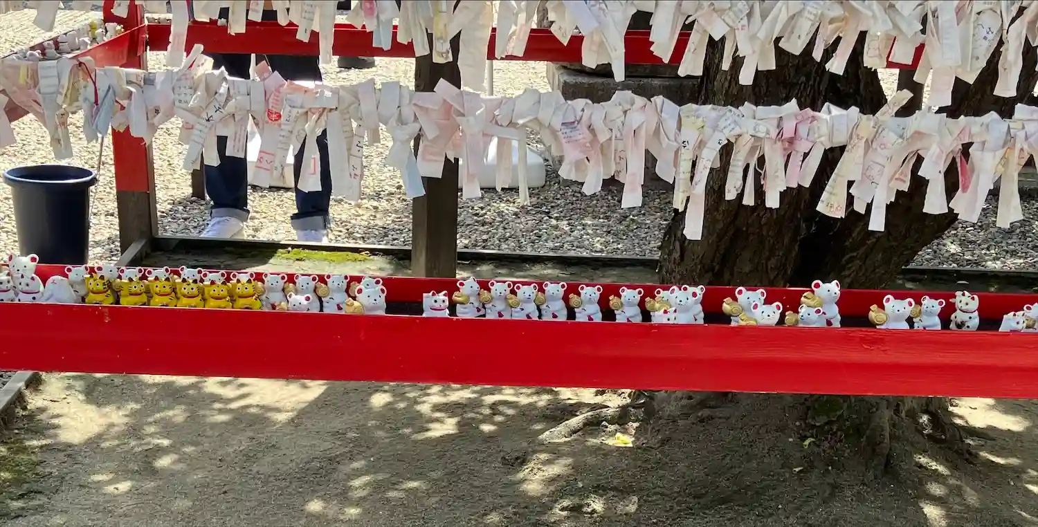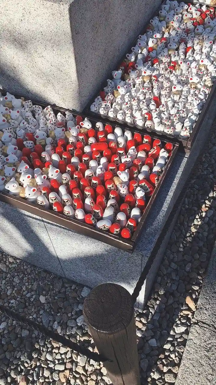 ネズミの置物が数えきれないくらいたくさんあってたまに招き猫が入ってるのがとても可愛いかったです。と…