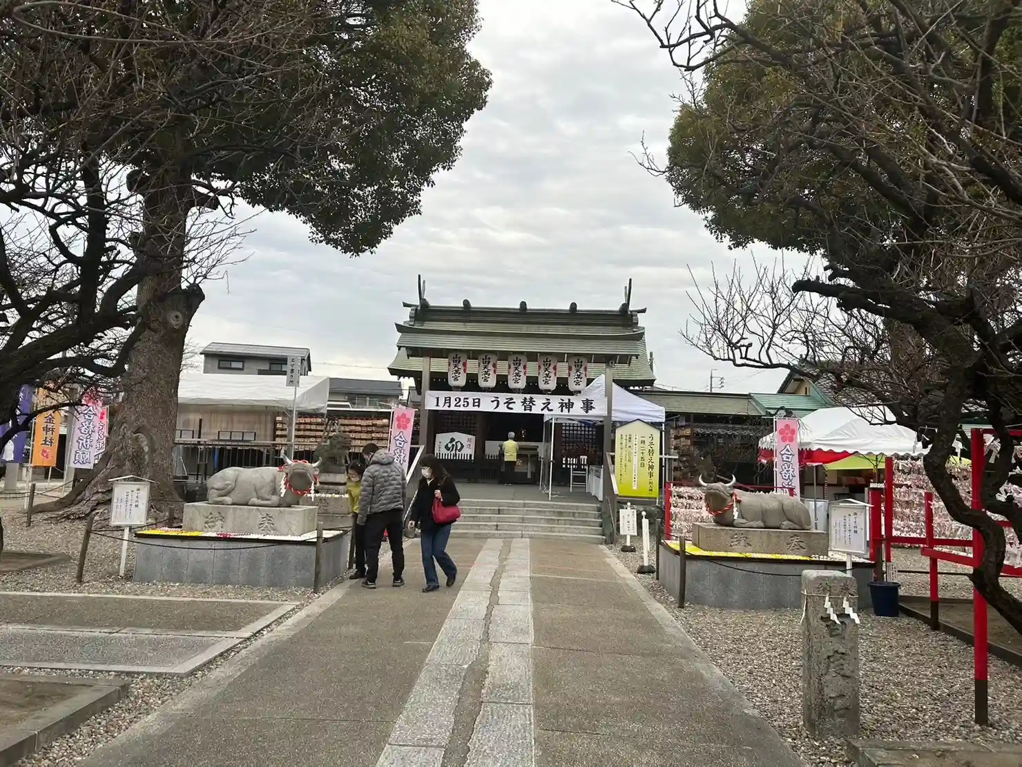 名古屋三大天神のひとつ。初天神の日にお参りしました。うそ鳥替え神事は中止でしたが、うそ鳥、御神梅酒…