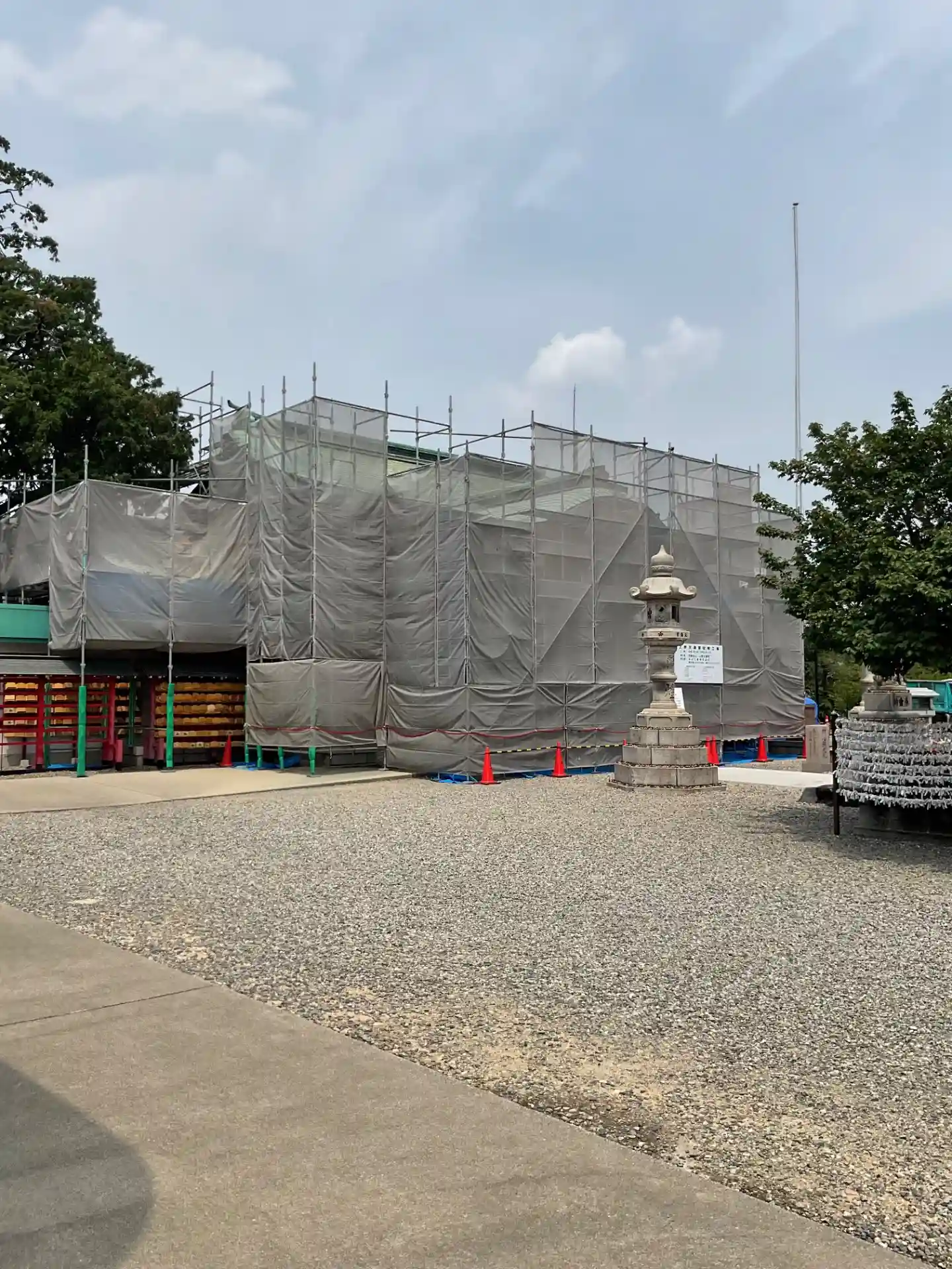 久しぶりのお伺いで本殿を工事なさっていました。
