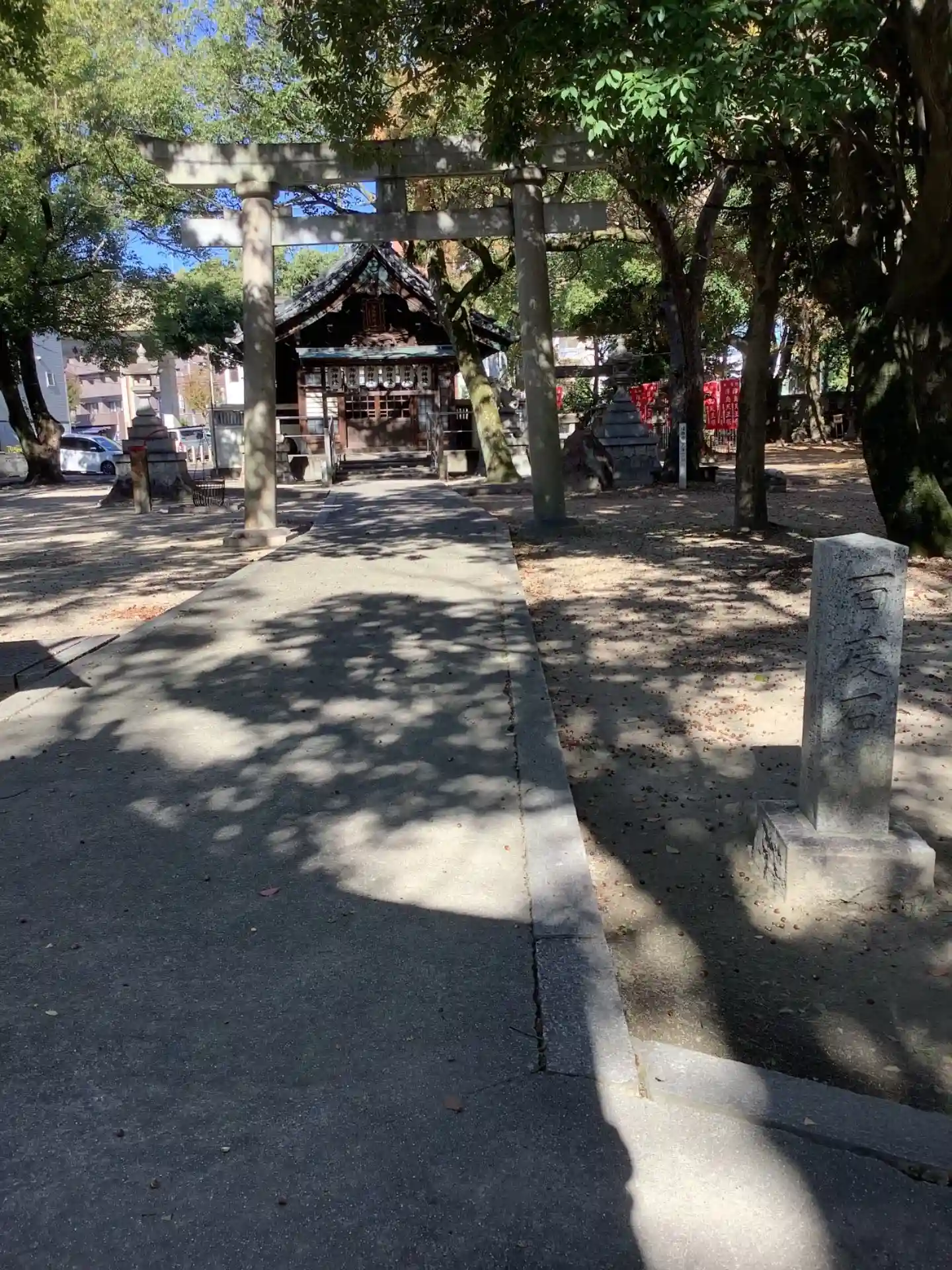 神楽殿と本殿を挟む形で北東に様々な摂社末社が置かれています。