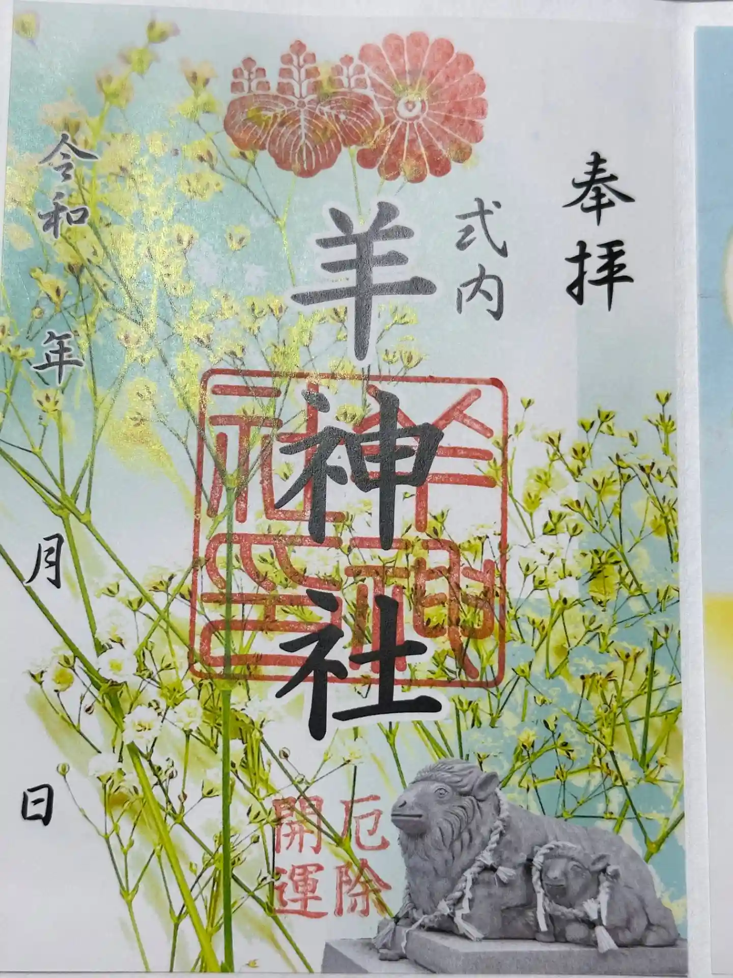 社務所が閉まっていた為、電話したら、郵送いただけることになり、到着してから撮影しました。