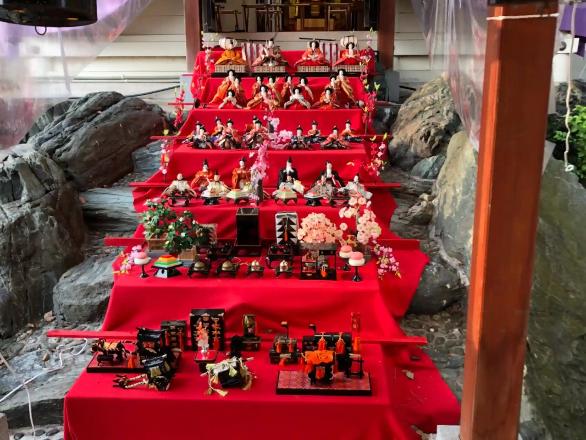 本殿内に飾られた雛人形